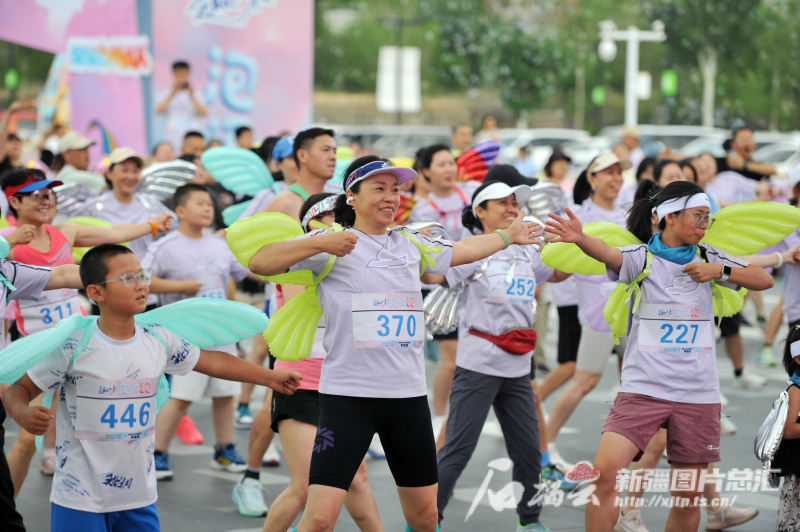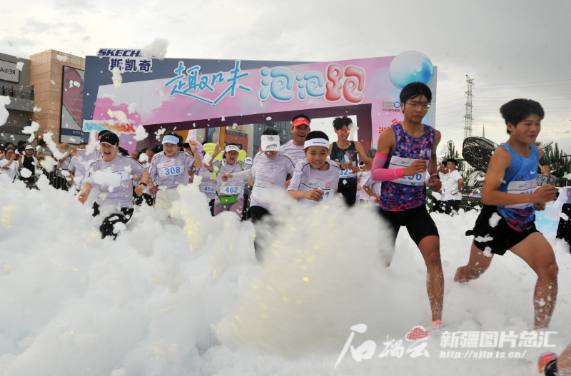 △6月14日,一場趣味“泡泡跑”活動在烏魯木齊杉杉奧特萊斯廣場舉辦,600多名市民參加了這場別開生面的5公里“泡泡跑”。與傳統(tǒng)的跑步比賽不同,“泡泡跑”更具趣味性,參與者可以邊跑邊玩,盡情享受一場清涼的泡泡盛宴。石榴云/新疆日報記者 秦梅花攝