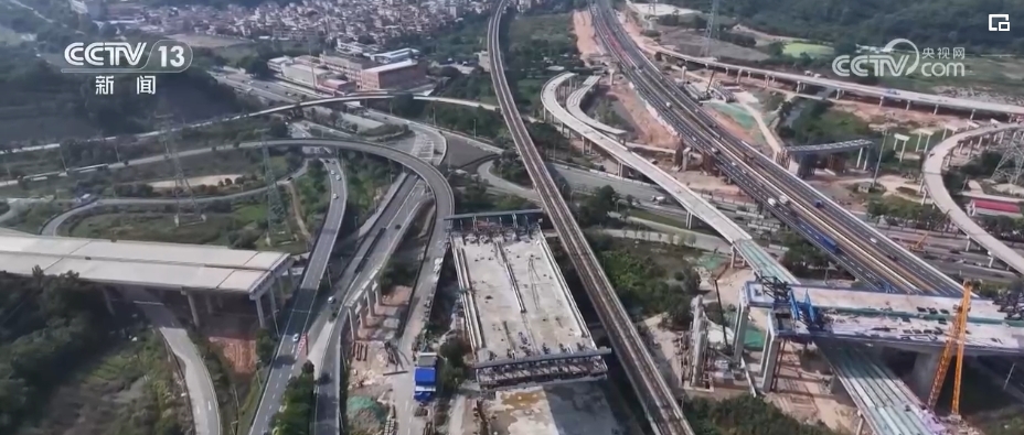 中開高速在河道縱橫交錯、高速公路密度較高的珠三角地區(qū),橋隧比高達(dá)94%。其中,在跨越廣澳高速和廣珠城際的位置,橋梁施工遇到了最大難題,就是施工不能影響高速與城際的正常運(yùn)行。為此,施工單位建造一座單體轉(zhuǎn)體橋,通過橋體旋轉(zhuǎn),避免施工與正常行車形成沖突。