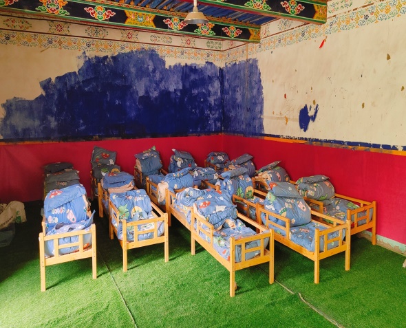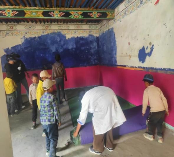 金點(diǎn)子,抓實(shí)干。自階段性入戶工作開展以來,駐西嘎村第十三批工作隊(duì)認(rèn)真了解入戶時(shí)發(fā)現(xiàn)的村幼兒園改造未能推進(jìn)的問題,現(xiàn)場走訪村幼兒園,排查村幼兒園用火、用電、用氣、食品衛(wèi)生安全隱患。在交談中,兩位教師談及幼兒園房間老舊、水泥地板凹凸不平,導(dǎo)致幼兒無法午休的問題,工作隊(duì)第一時(shí)間請(qǐng)示領(lǐng)導(dǎo),現(xiàn)場勘察房間形狀與大小,駐村隊(duì)員自發(fā)購買并鋪就64.2平米防滑草坪地毯,以改善園內(nèi)22名幼兒生活環(huán)境,給孩子們創(chuàng)建了相對(duì)舒適、干凈的午休環(huán)境。村幼兒園教師次珍表示:“此次活動(dòng)極大改善了孩子們的生活條件,感謝人行日喀則市分行駐村工作隊(duì)一直以來對(duì)村幼兒園工作的關(guān)心。”