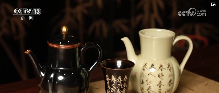 劉嘉豪是劉坤庭的兒子,這套出自他手的作品,器型、釉色的創(chuàng)意都源自“黑石號(hào)”的出水陶瓷,作品上面的詩句也是復(fù)刻而來。