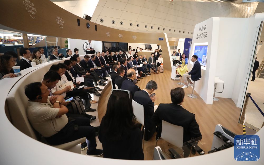 ↑ 這是6月25日拍攝的夏季達(dá)沃斯論壇開幕式現(xiàn)場(chǎng)。