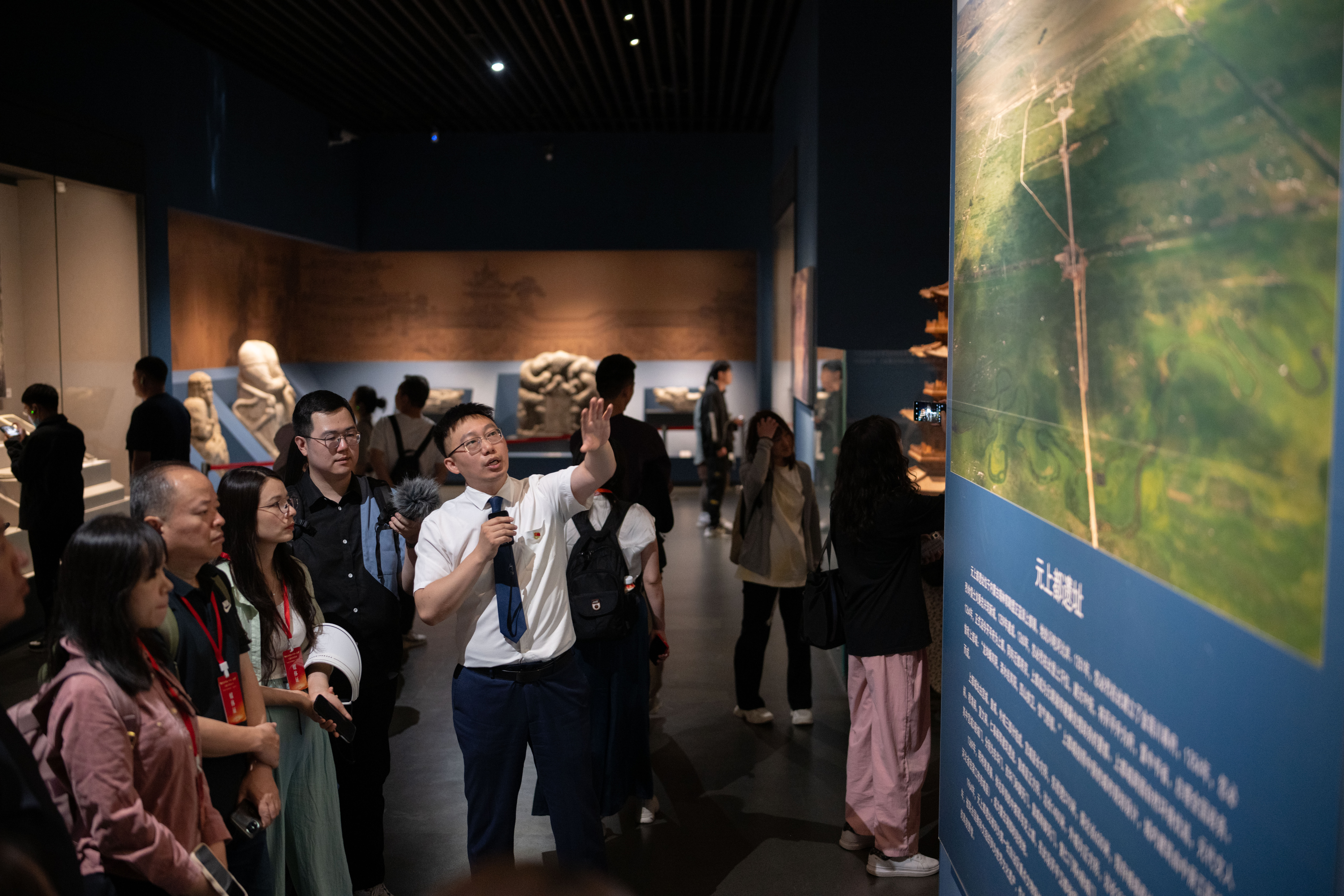 在內(nèi)蒙古博物院,采訪團(tuán)成員聽講解。