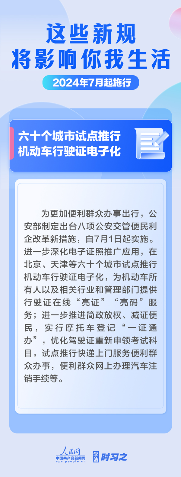 完善注冊(cè)資本認(rèn)繳登記制度;禁止“大數(shù)據(jù)殺熟”規(guī)范“自動(dòng)續(xù)費(fèi)”;在六十個(gè)城市試點(diǎn)推行機(jī)動(dòng)車行駛證電子化……7月起,這些新規(guī)施行,將影響你我生活。