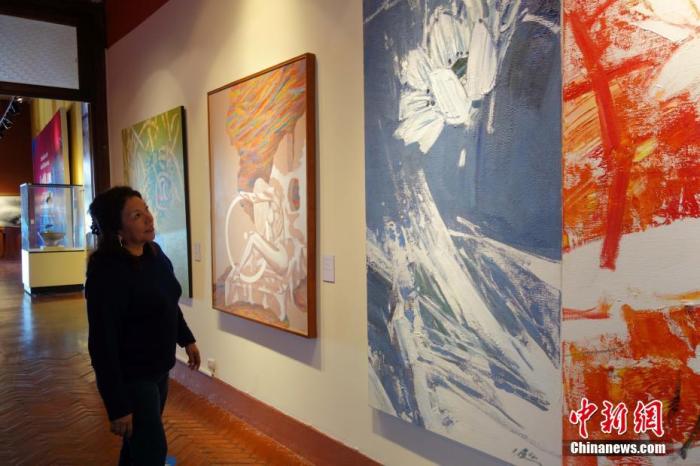 資料圖:當?shù)貢r間2016年11月18日,利馬,一名秘魯女觀眾觀看APEC“人與自然”藝術(shù)展。11月16日,為期23天的“感知中國走進秘魯——APEC‘人與自然’藝術(shù)展”在秘魯國家考古人類學(xué)歷史博物館舉辦。 中新社記者 莫成雄 攝