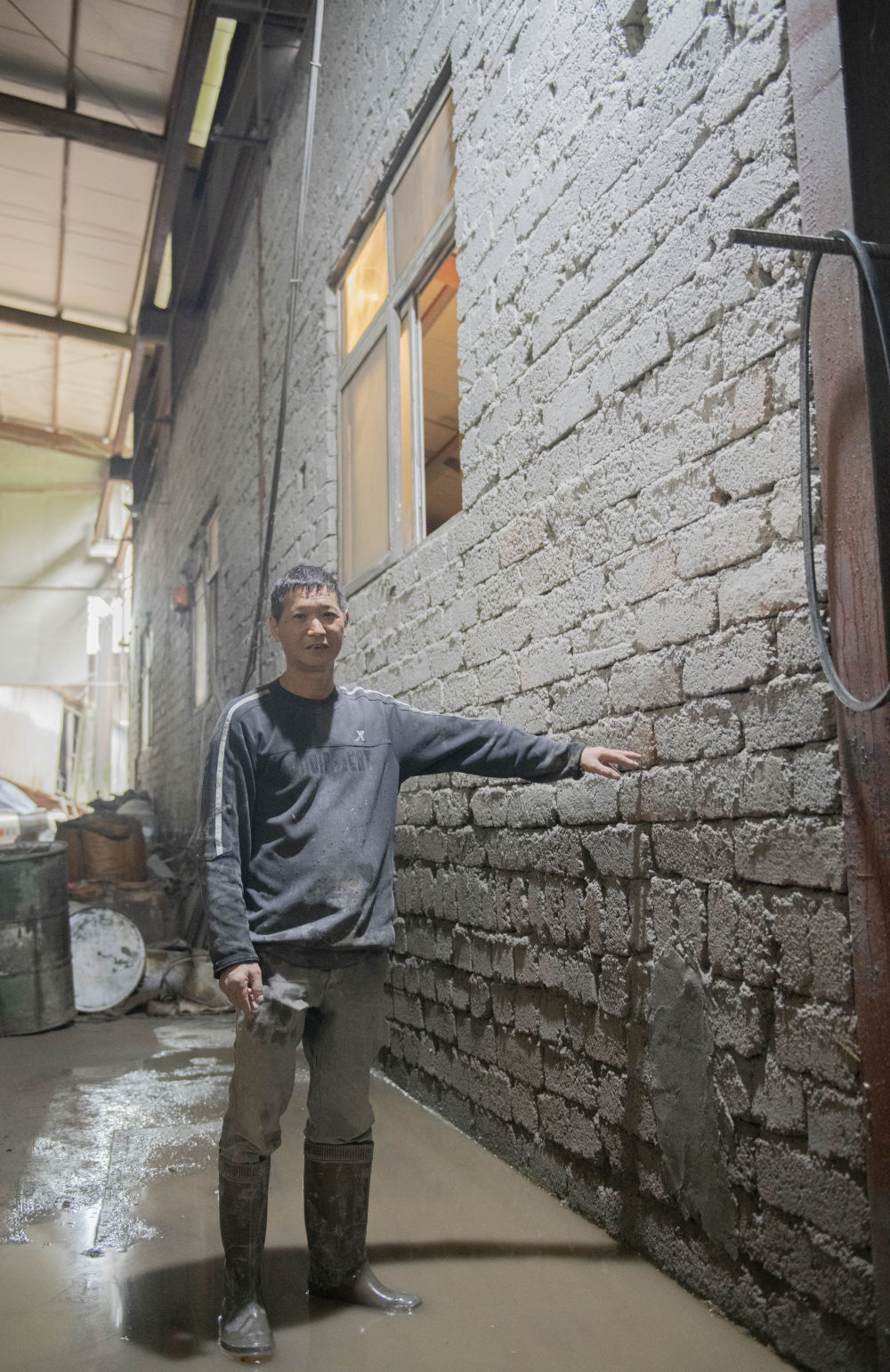 自力更生,生產(chǎn)自救。在東臨溪鎮(zhèn)臨溪村,金童水泥有限公司員工汪連枝正和同事們搶修被洪水浸泡后的設(shè)備,全力以赴為復(fù)工復(fù)產(chǎn)做準(zhǔn)備。記者走訪看到,這里處處有被水浸泡的印記,廠區(qū)后方還有山體坍塌留下的泥土。