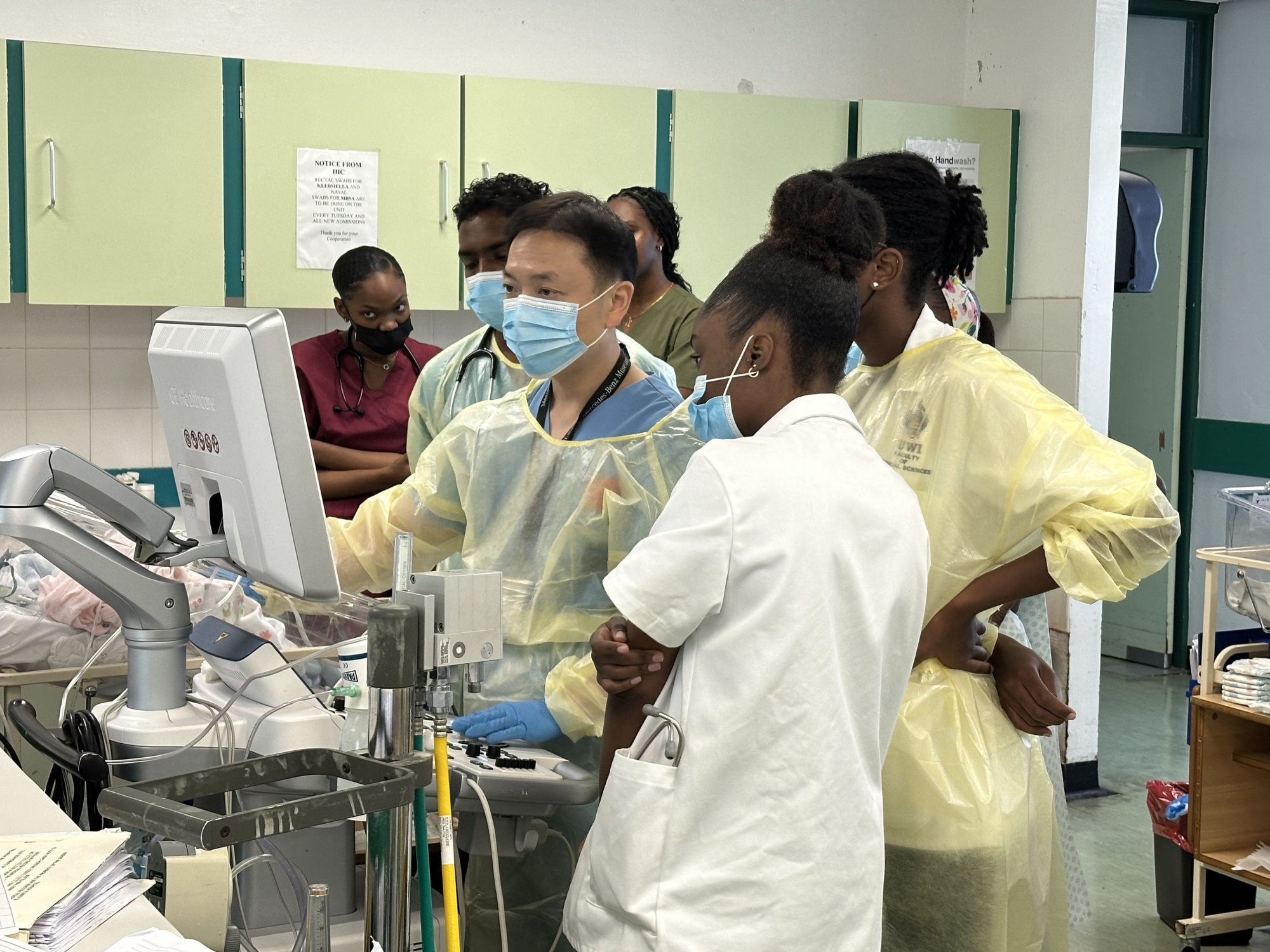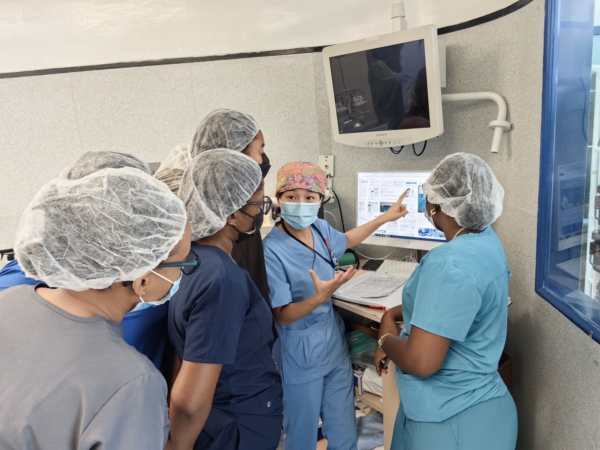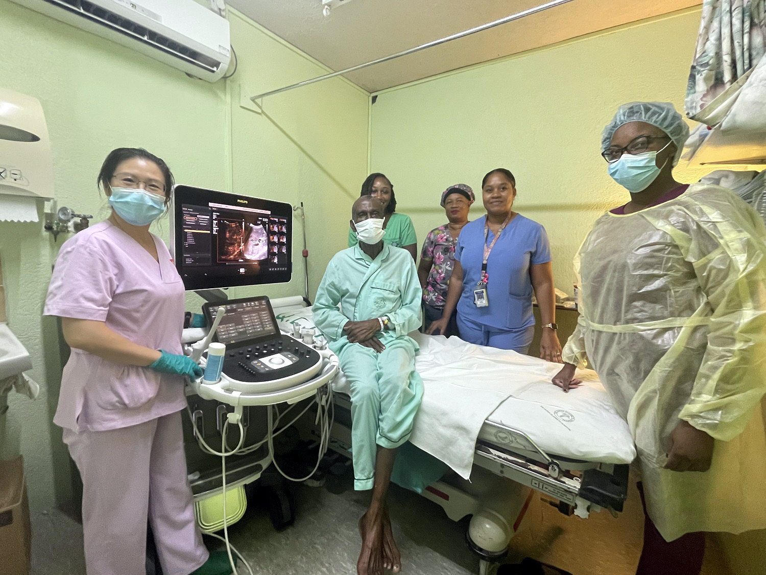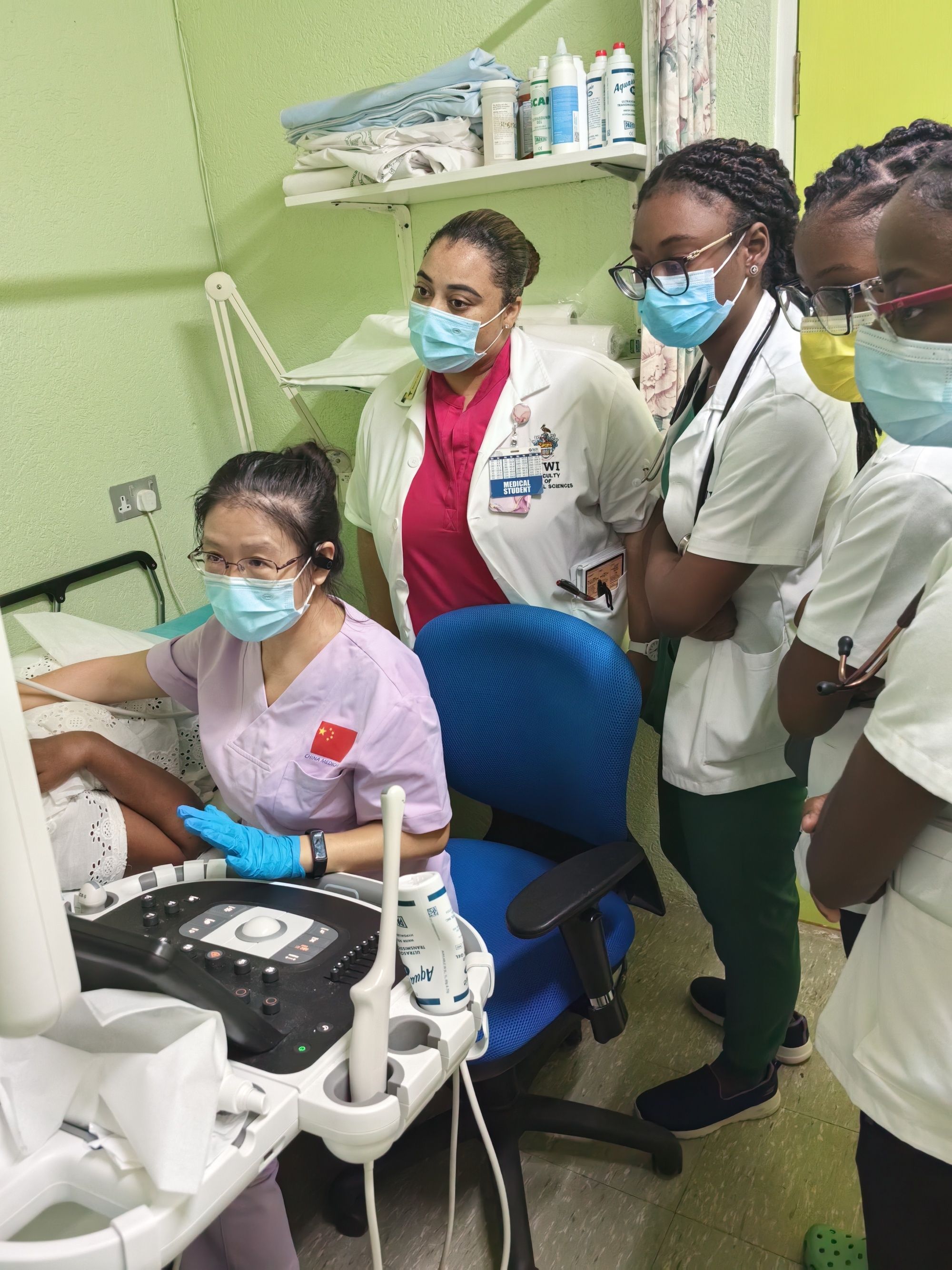 劉麗萍(左一)開(kāi)展巴巴多斯第一例超聲造影技術(shù)