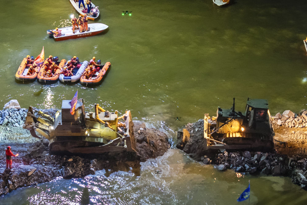 決口合龍時,湖面的風很大。劉子翔屏住呼吸,緊盯著無人機遙控器上的監(jiān)控畫面,大拇指精準調(diào)節(jié)操作桿?;貞浧鹉莻€激動人心的時刻,劉子翔說:“雖然有點想拿手機拍攝合龍瞬間,但在那個關(guān)鍵時刻,年輕人不能‘掉鏈子’?!?/p>