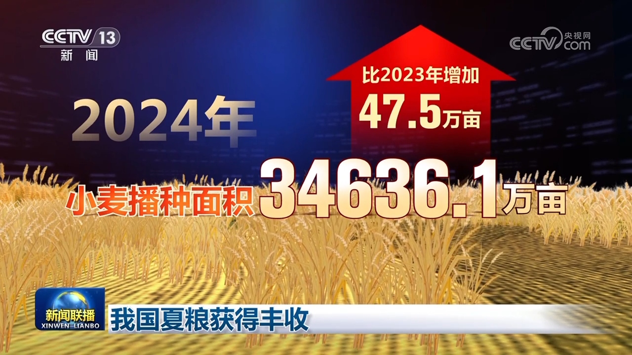 夏糧播種面積保持穩(wěn)定。2024年,夏糧播種面積為39920萬畝,其中,小麥播種面積34636.1萬畝,比2023年增加47.5萬畝。
