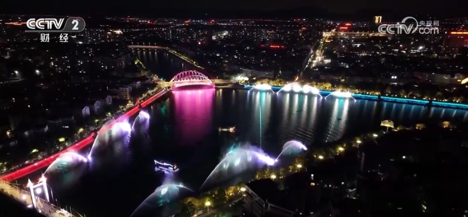 夜幕降臨,浙江諸暨的浣紗江畔上演著一場(chǎng)穿越古今的夜游盛宴。隨著游船的行進(jìn),一場(chǎng)場(chǎng)精心編排的沉浸式演出在光影交錯(cuò)中上演。游客們可以坐在船艙內(nèi)邊看演出邊欣賞兩岸風(fēng)光,仿佛置身于一幅流動(dòng)的畫卷中。