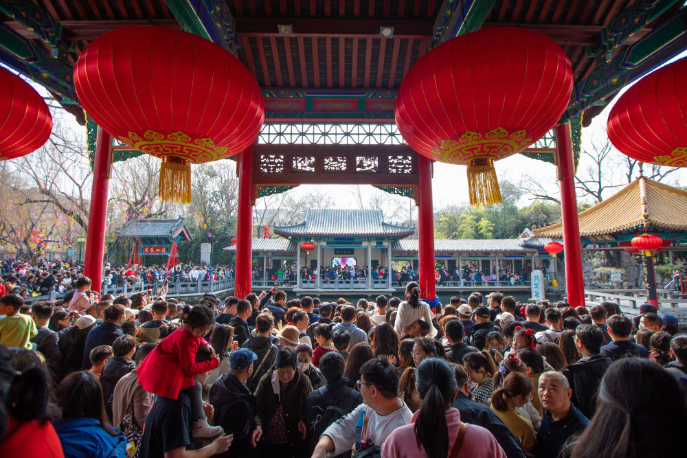 2月14日,游客在山東濟(jì)南趵突泉景區(qū)游玩。春節(jié)假期,許多景區(qū)迎來客流高峰,文旅消費(fèi)市場火爆。 新華社發(fā)(徐舟 攝)