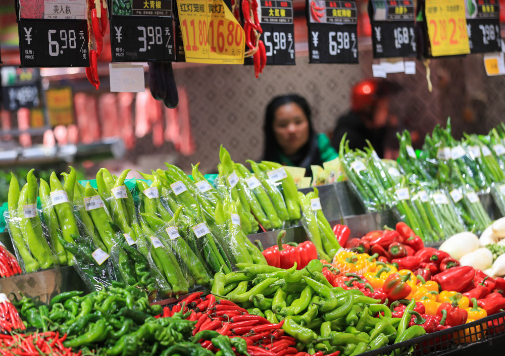 3月9日,消費(fèi)者在貴州省從江縣一家超市選購蔬菜。新華社發(fā)(羅京來攝)