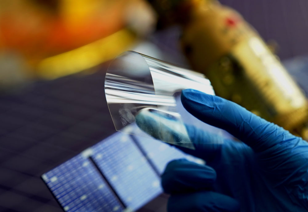 4月12日,河北省秦皇島經(jīng)濟(jì)技術(shù)開發(fā)區(qū)一家特種玻璃企業(yè)的工人在展示一款用于航天領(lǐng)域的玻璃產(chǎn)品。新華社記者 楊世堯 攝