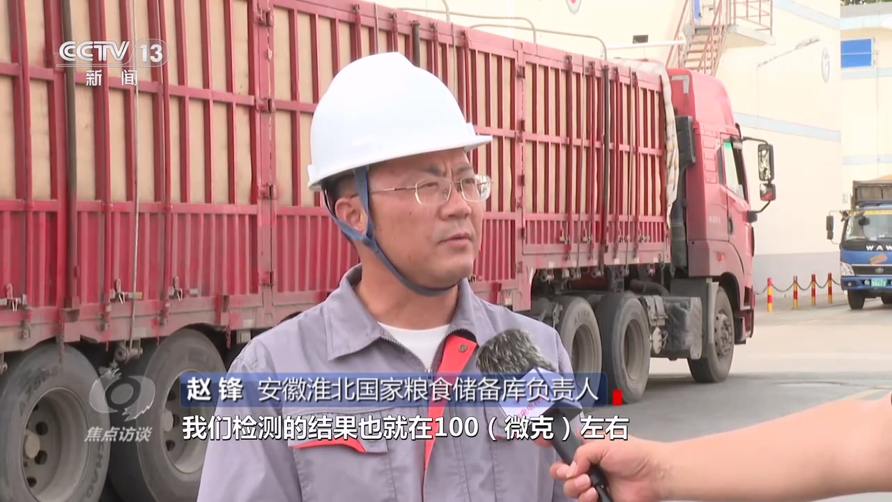 安徽淮北國(guó)家糧食儲(chǔ)備庫(kù)負(fù)責(zé)人趙鋒:“嘔吐毒素標(biāo)準(zhǔn)是每一千克小于1000微克,我們檢測(cè)的結(jié)果也就在100微克左右,有的檢不出來(lái)。玉米赤霉烯酮(標(biāo)準(zhǔn))是每一千克小于60微克,檢測(cè)結(jié)果基本上在10微克以內(nèi),小麥的質(zhì)量非常好?!?/p>