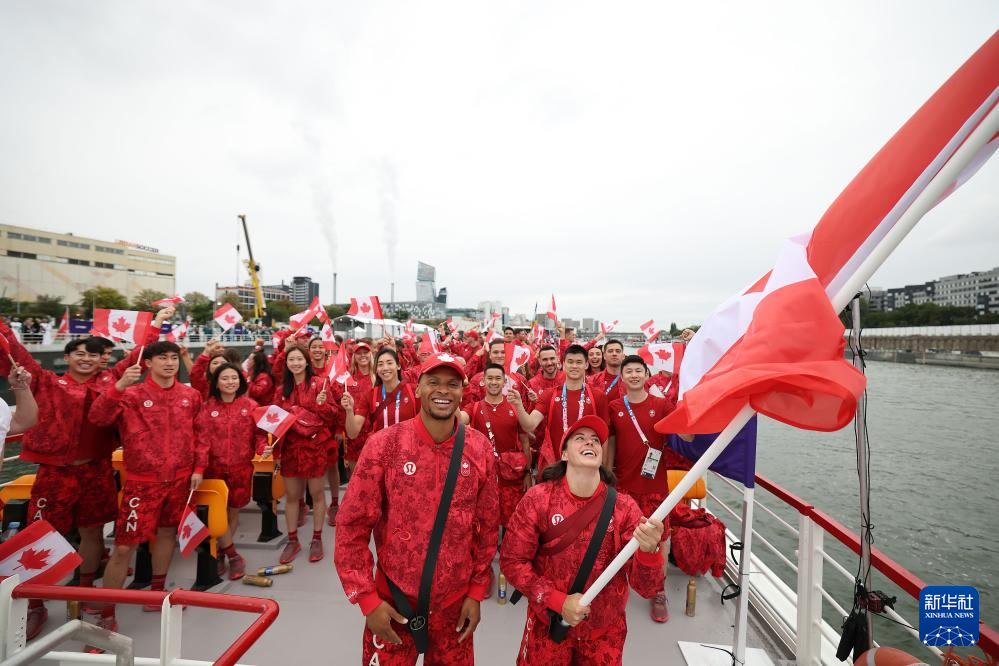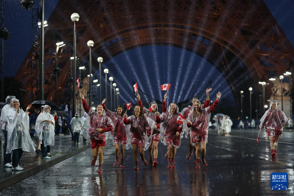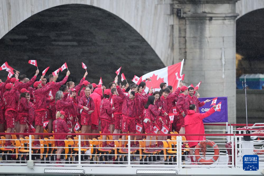 7月26日,加拿大體育代表團(tuán)(前)在開幕式上。新華社記者 任正來(lái) 攝