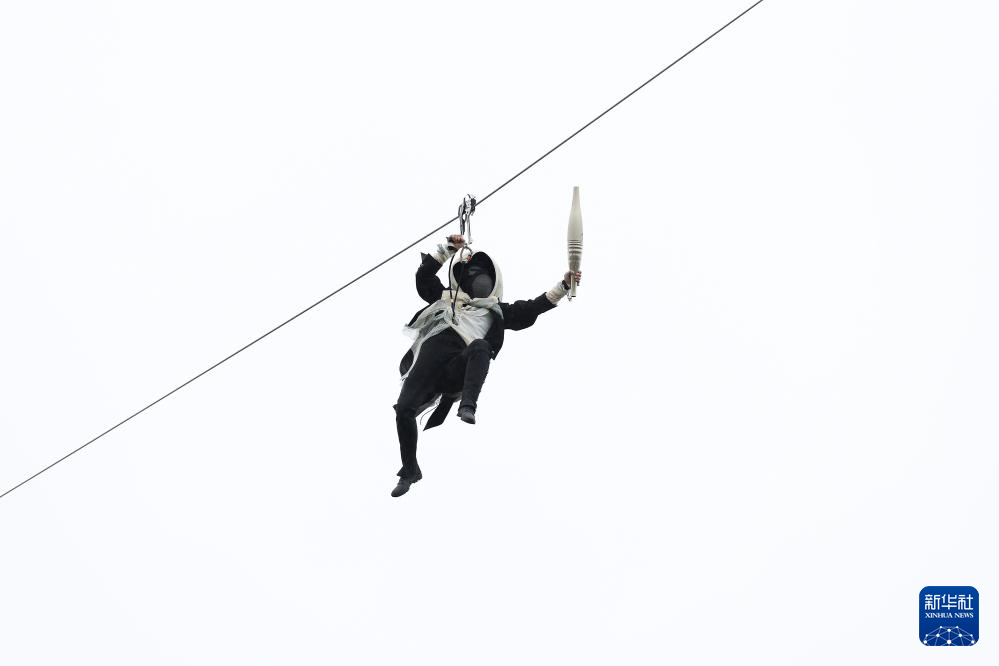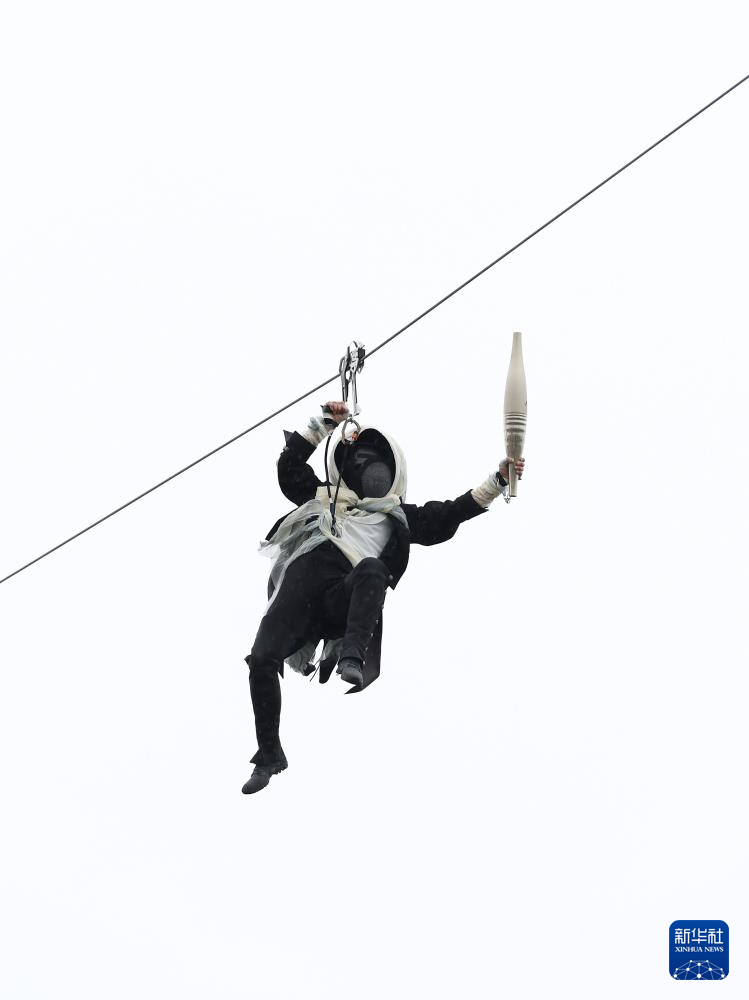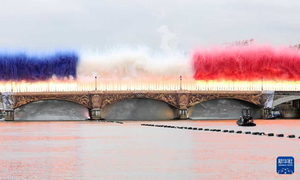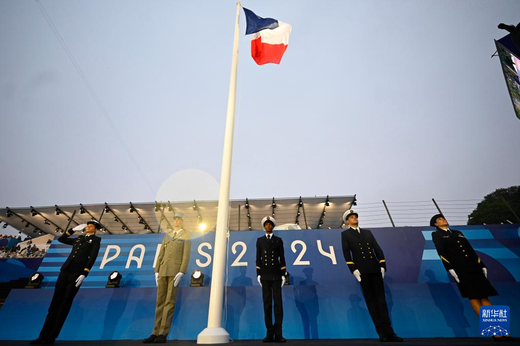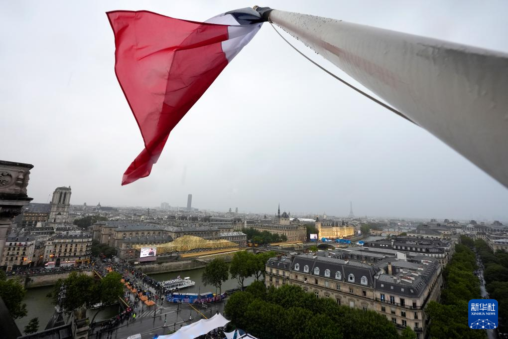 7月26日,開幕式上升起法國(guó)國(guó)旗。新華社發(fā)(POOL照片/洛伊克·韋南斯)