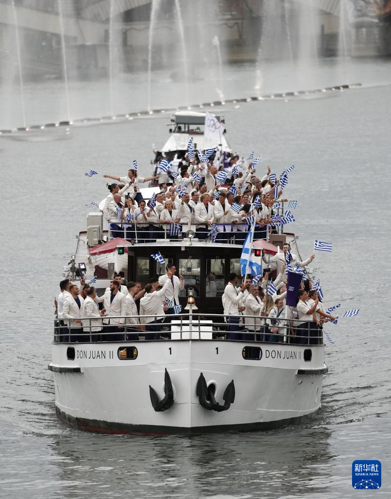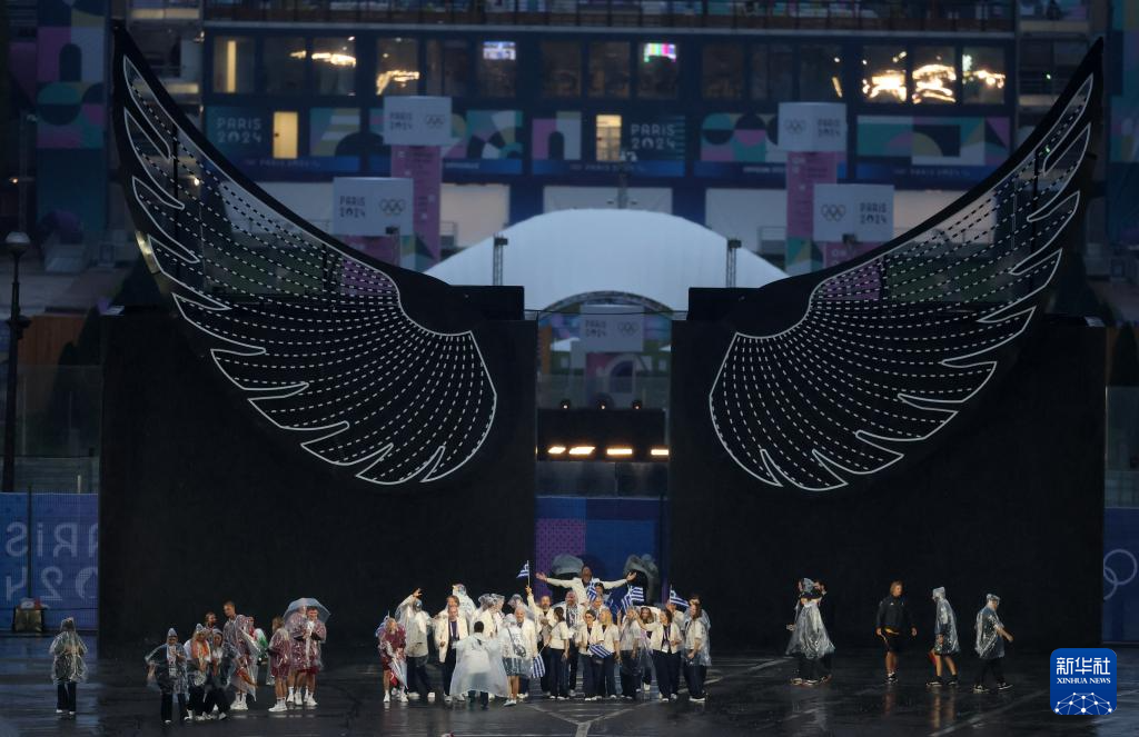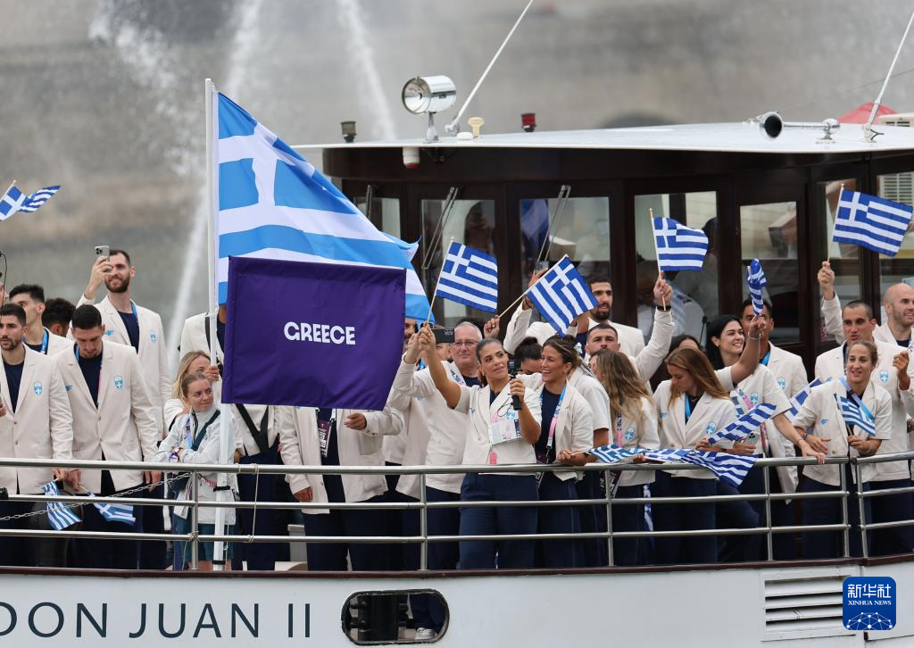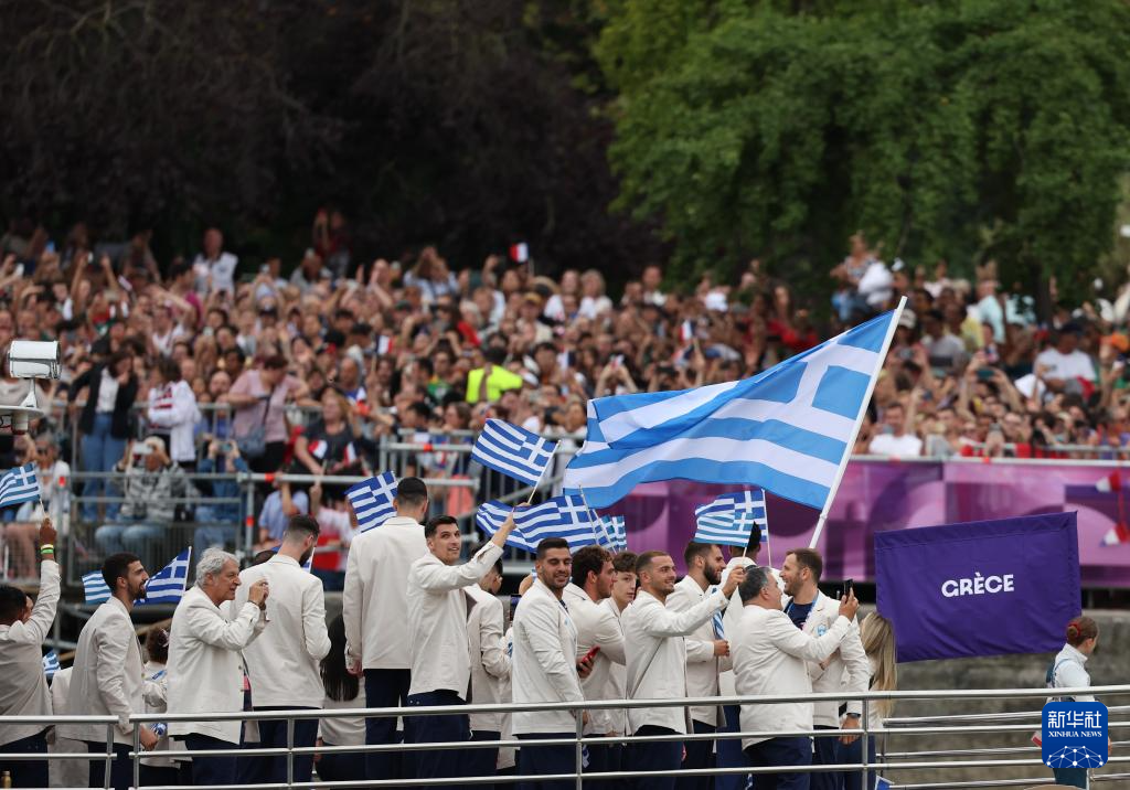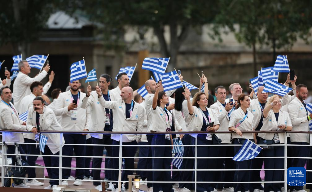 7月26日,希臘體育代表團(tuán)在開幕式上。新華社記者 郭昱 攝