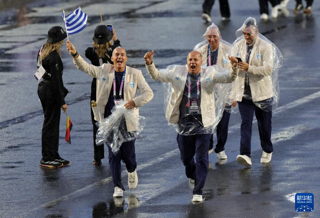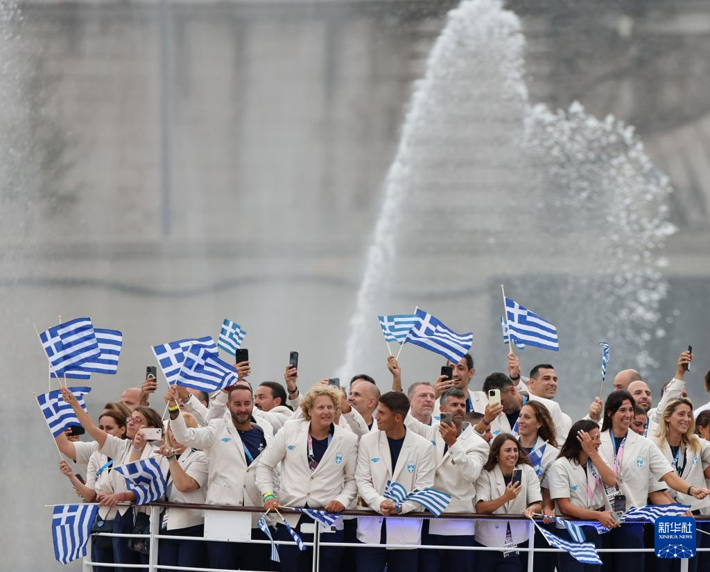 7月26日,希臘體育代表團(tuán)成員在開幕式上。新華社記者 王東震 攝