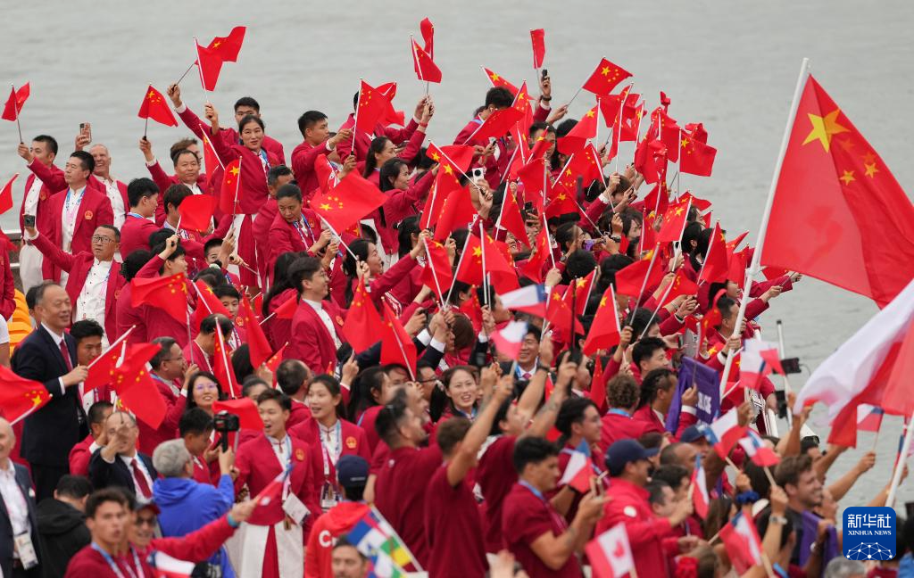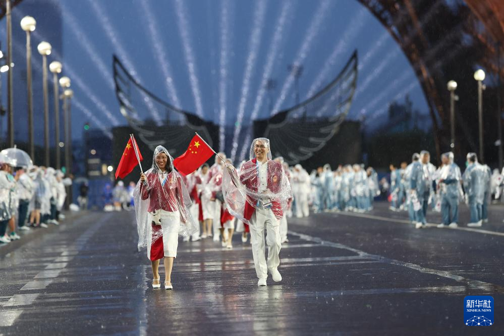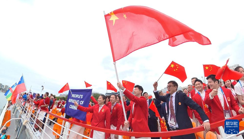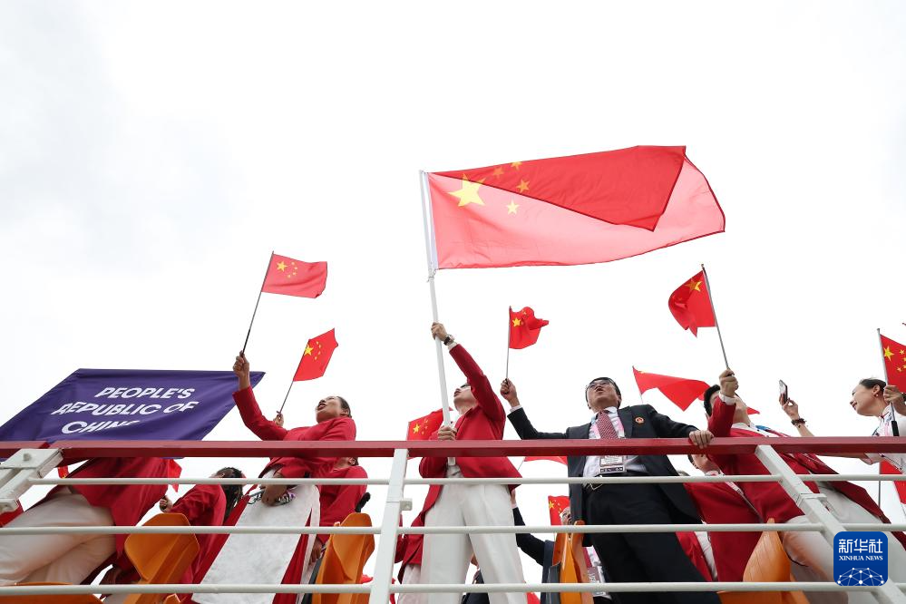 7月26日,中國(guó)體育代表團(tuán)在開幕式上。新華社記者 陳斌 攝