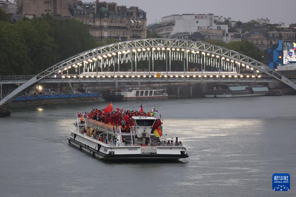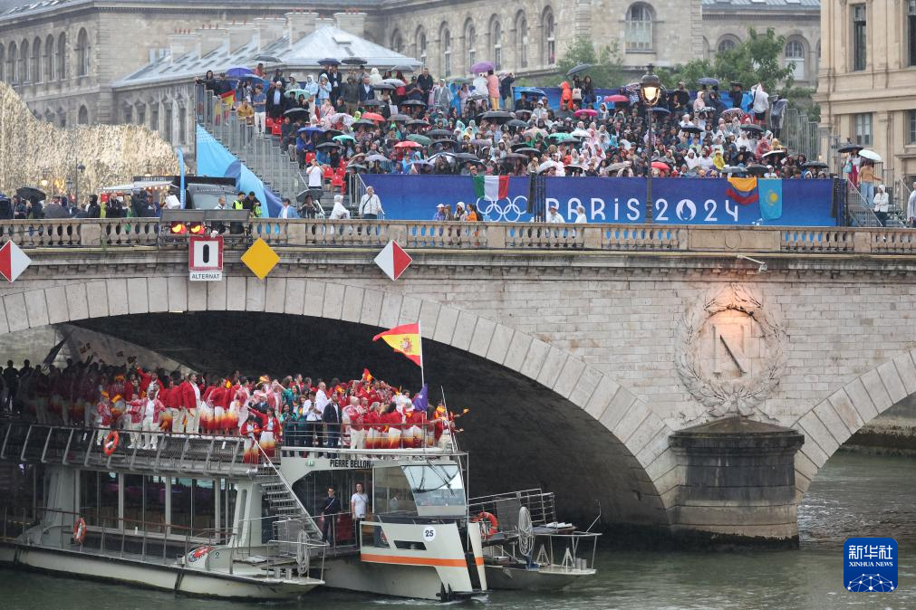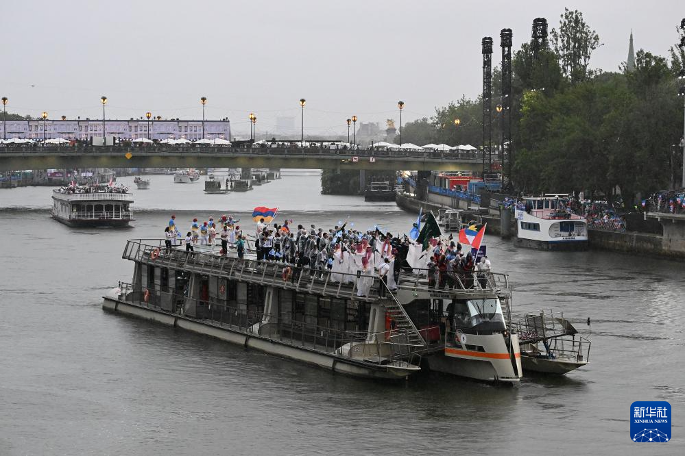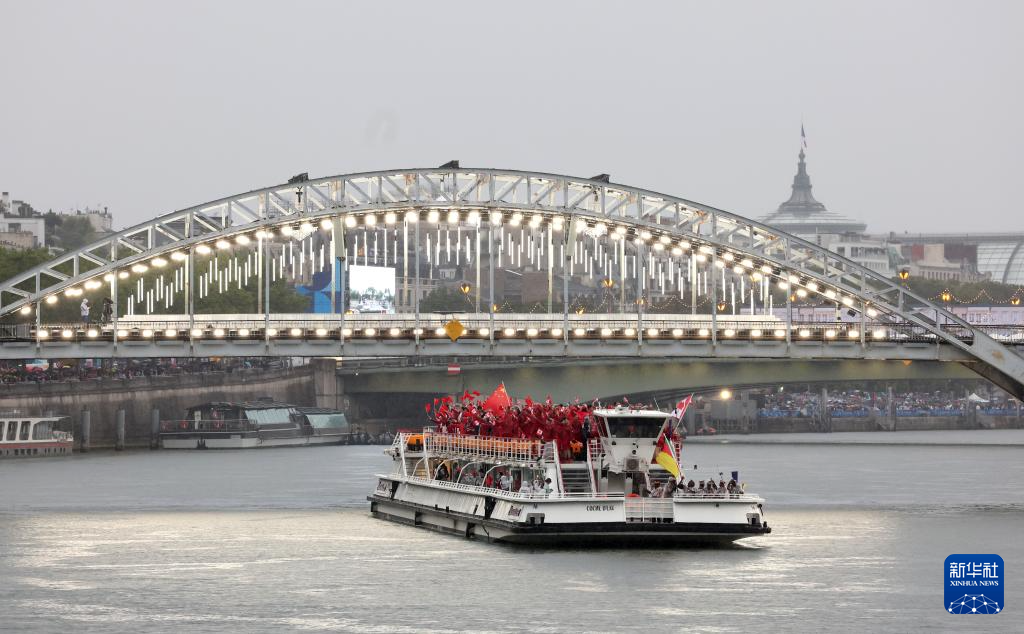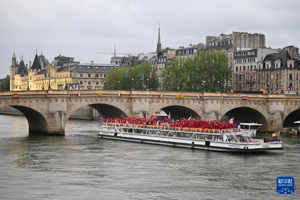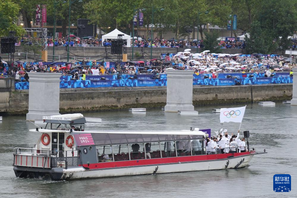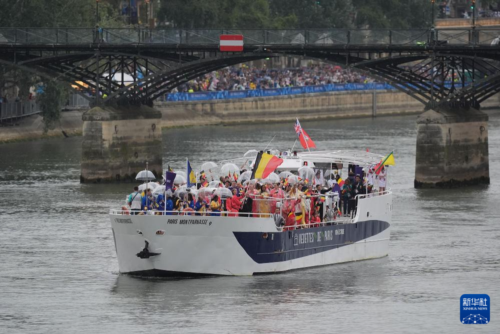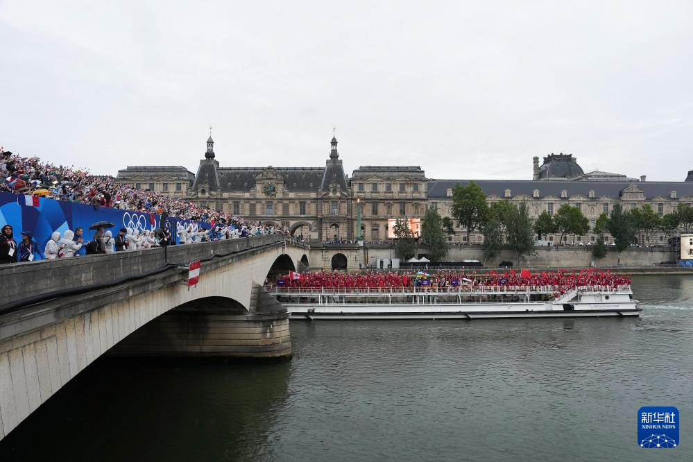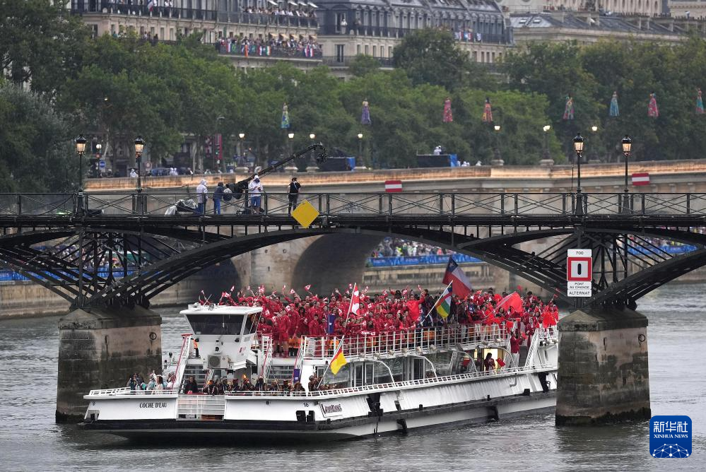 7月26日,各代表團(tuán)成員在開幕式上抵達(dá)耶拿橋。新華社發(fā)(POOL照片/盧多維克·馬林)
