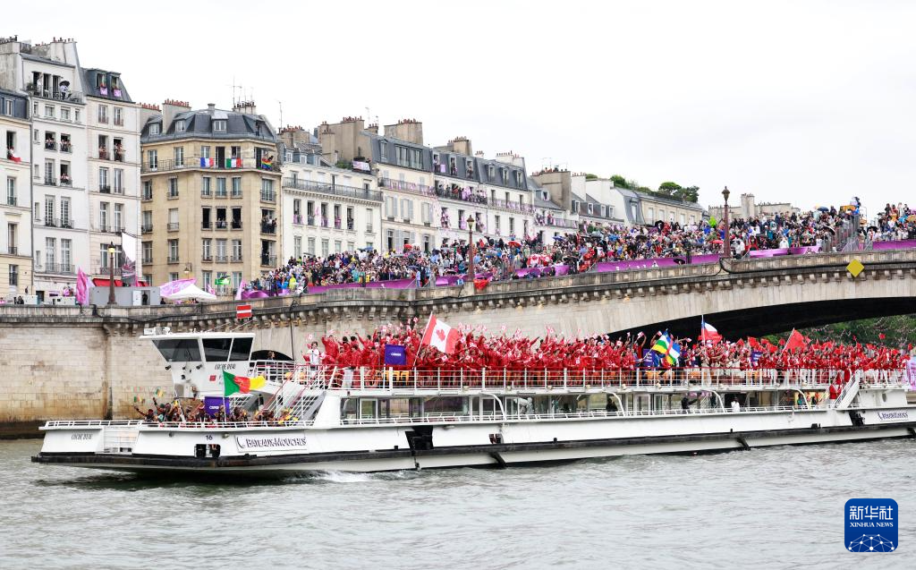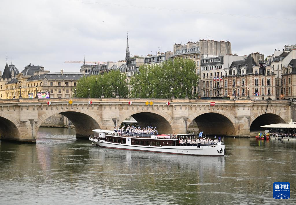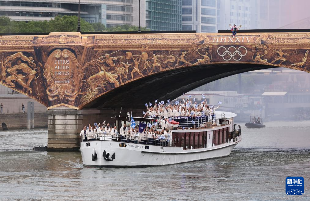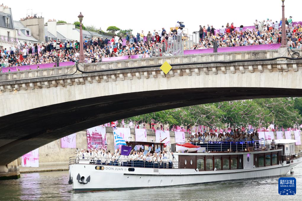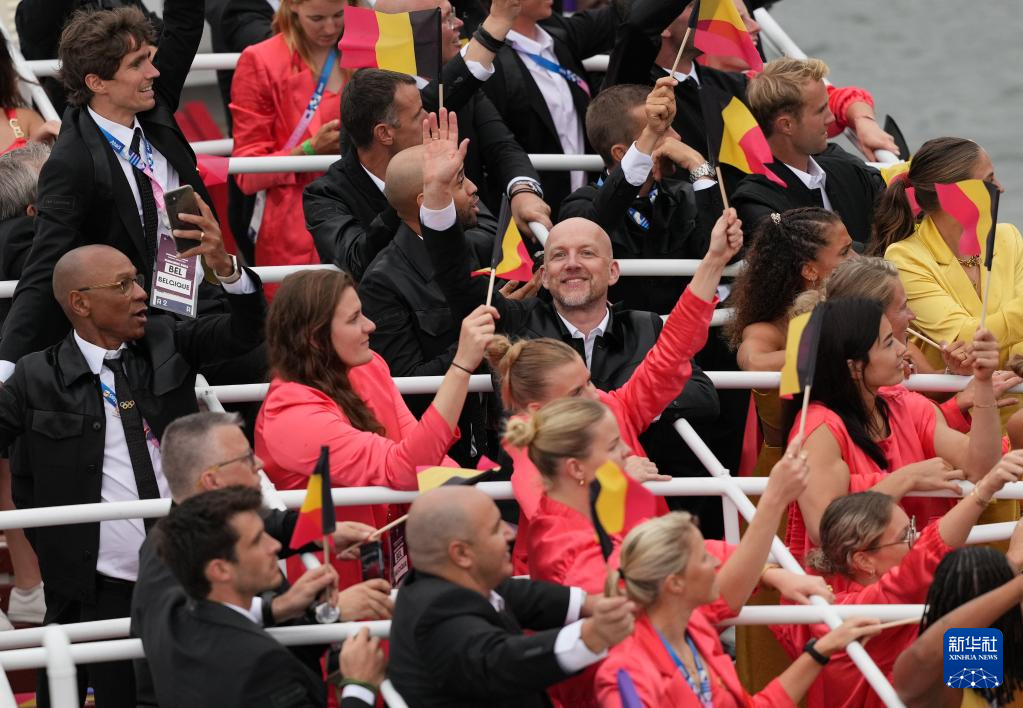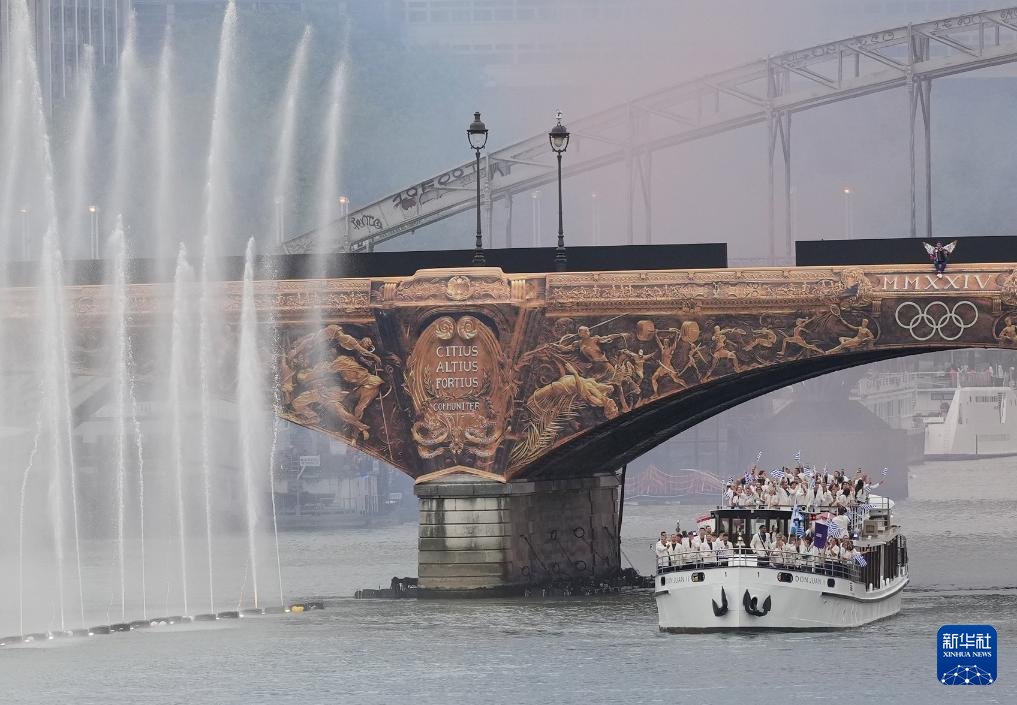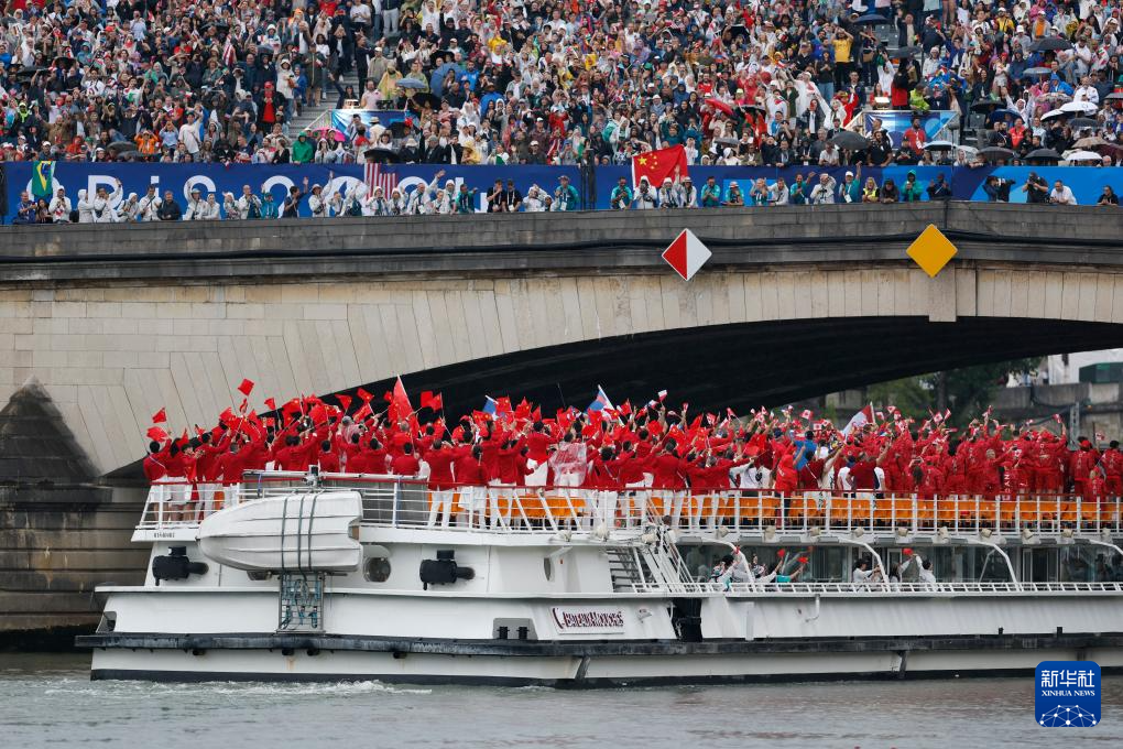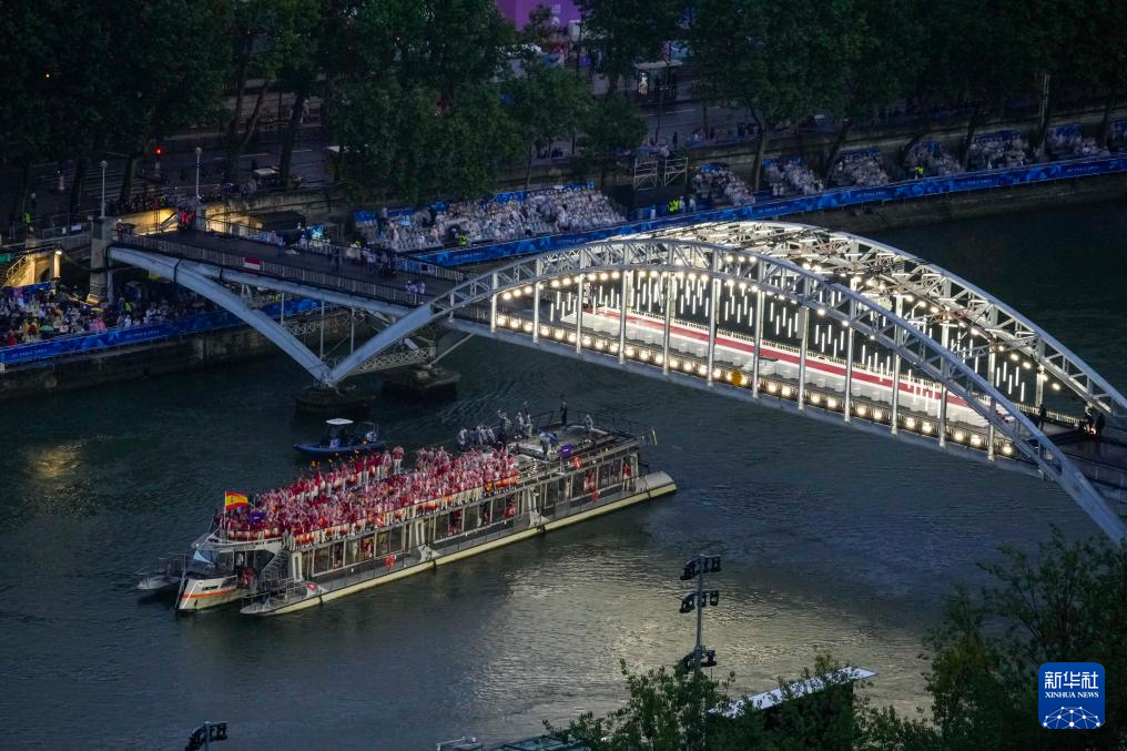 7月26日,各代表團(tuán)成員在開幕式上抵達(dá)耶拿橋。新華社發(fā)(POOL照片/盧多維克·馬林)