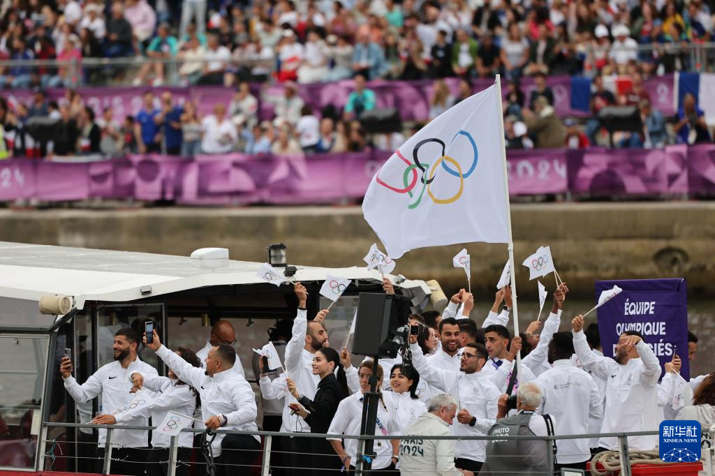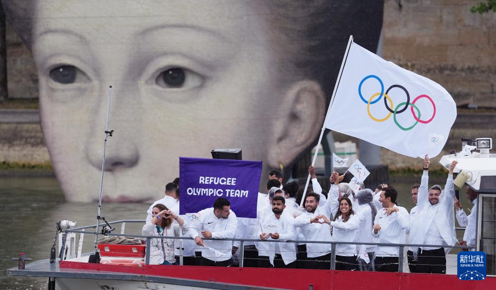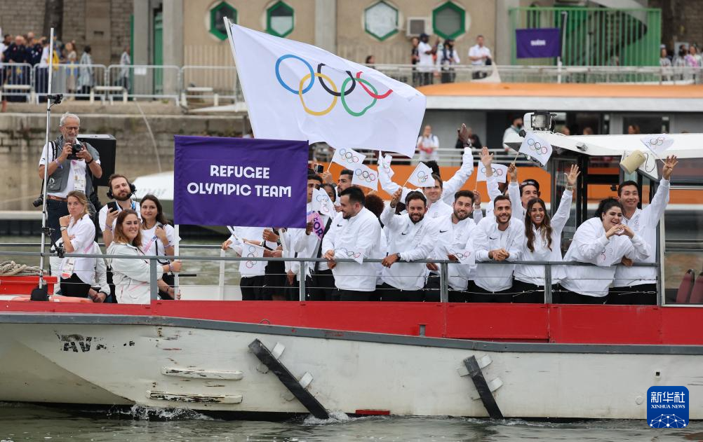 7月26日,難民體育代表團(tuán)在開幕式上。新華社記者 任正來(lái) 攝