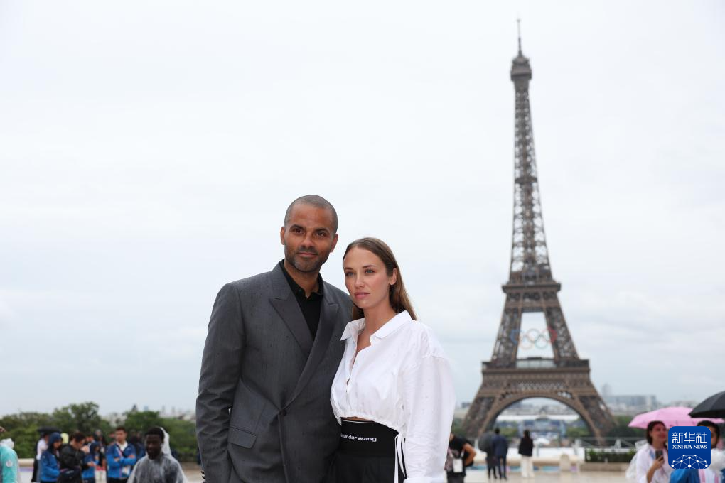 7月26日,法國(guó)籃球名宿托尼·帕克(左)在開幕式開始前合影。新華社記者 李穎 攝pagebreak