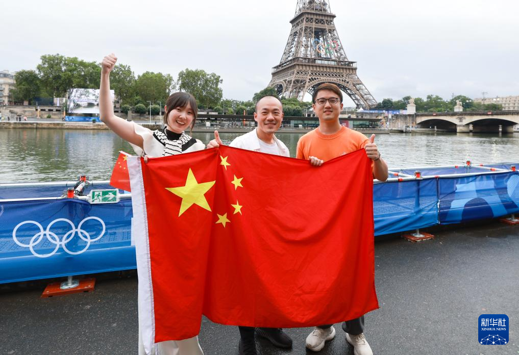 7月26日,哥倫比亞體育代表團(tuán)成員在埃菲爾鐵塔前。新華社記者 李明 攝