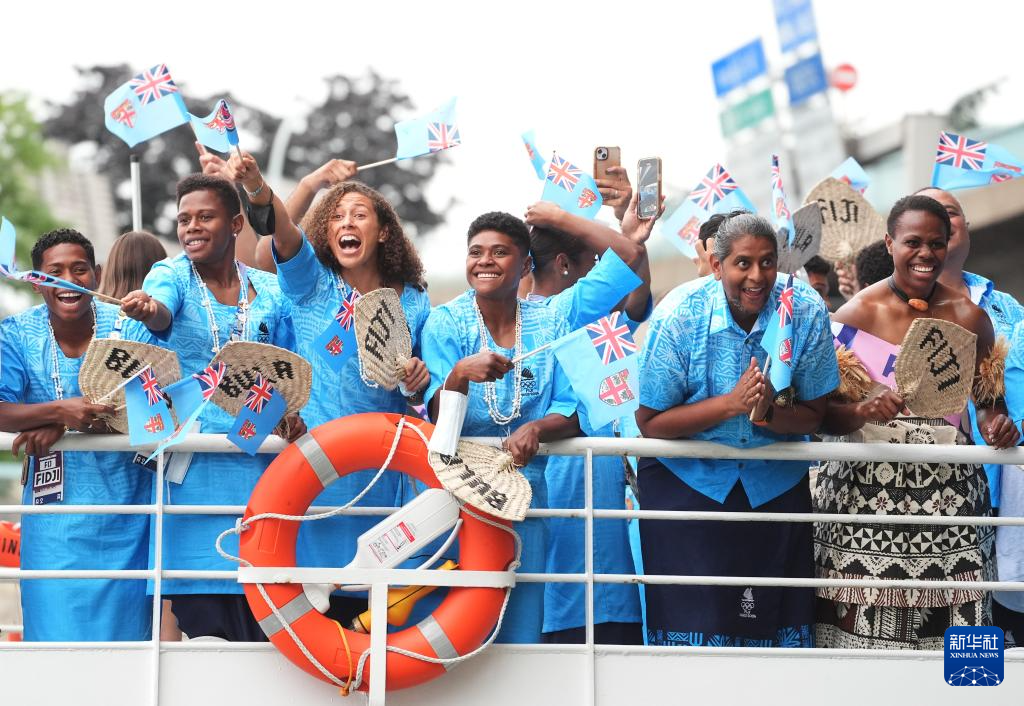 7月26日,斐濟(jì)體育代表團(tuán)成員在開幕式上。新華社記者 呂小煒 攝