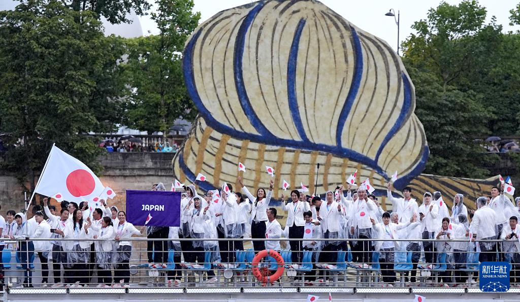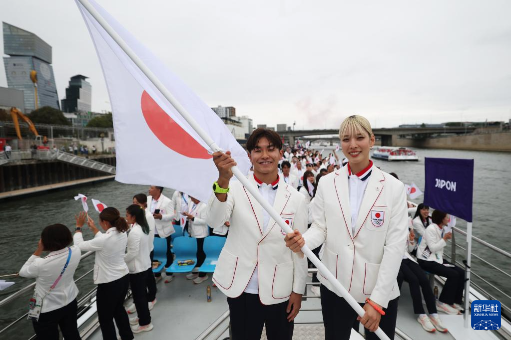 7月26日,日本體育代表團(tuán)在開幕式上。新華社記者 江文耀 攝