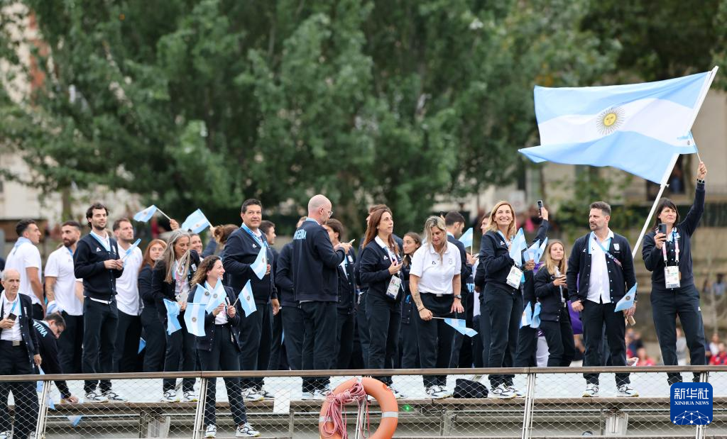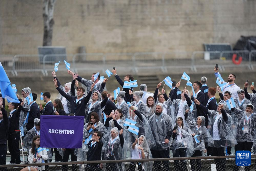 7月26日,阿根廷體育代表團(tuán)成員在開幕式上。新華社記者 王東震 攝
