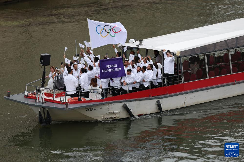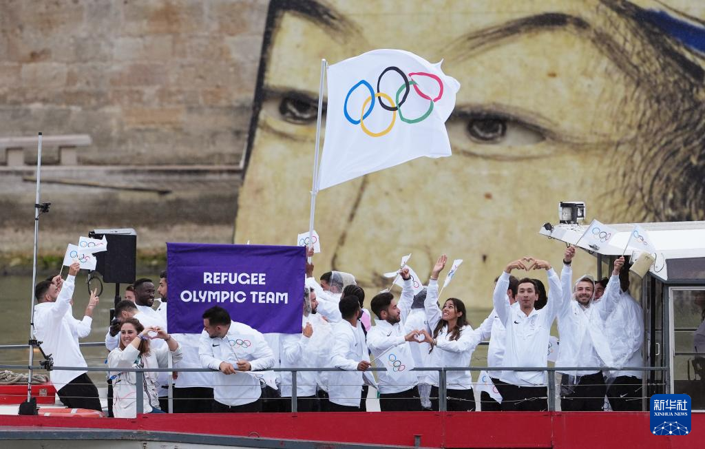 7月26日,難民體育代表團(tuán)在開幕式上。新華社記者 費(fèi)茂華 攝pagebreak