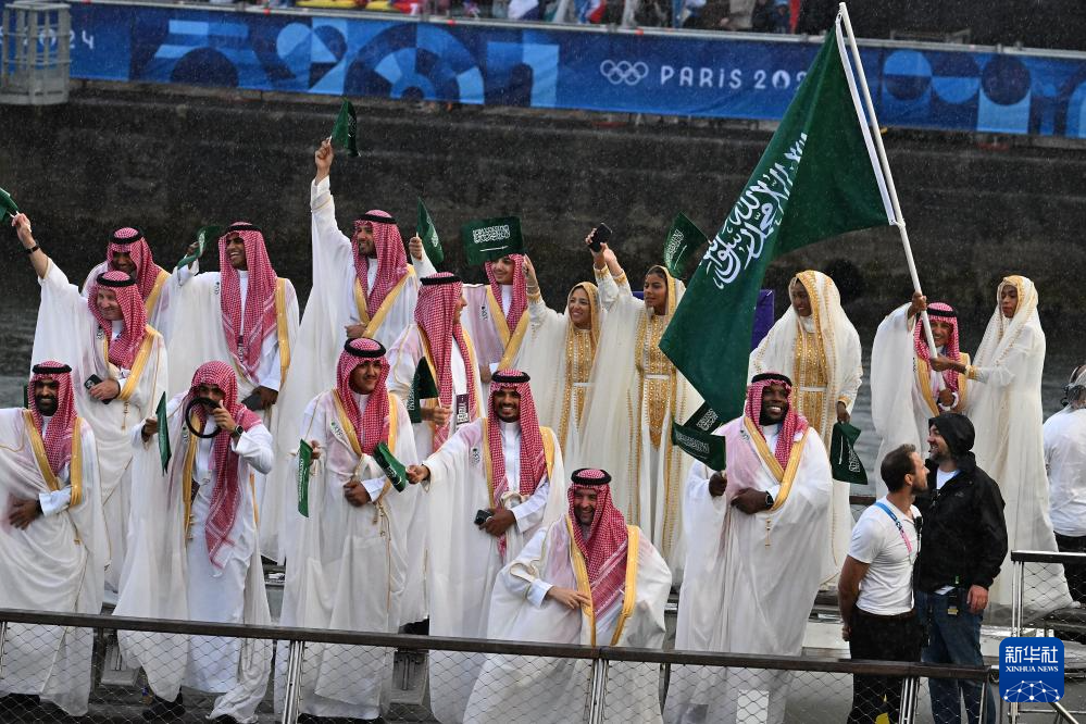 7月26日,安提瓜和巴布達(dá)、沙特阿拉伯、阿根廷、亞美尼亞、阿魯巴體育代表團(tuán)在開幕式上。新華社記者 張玉薇 攝