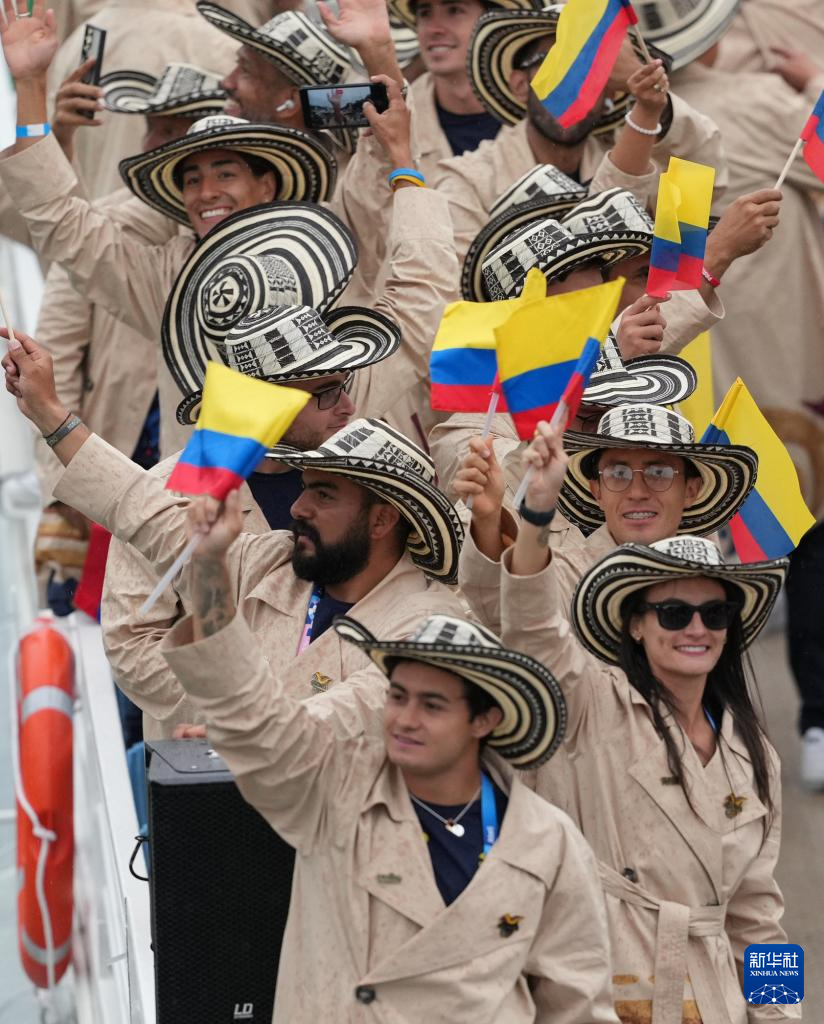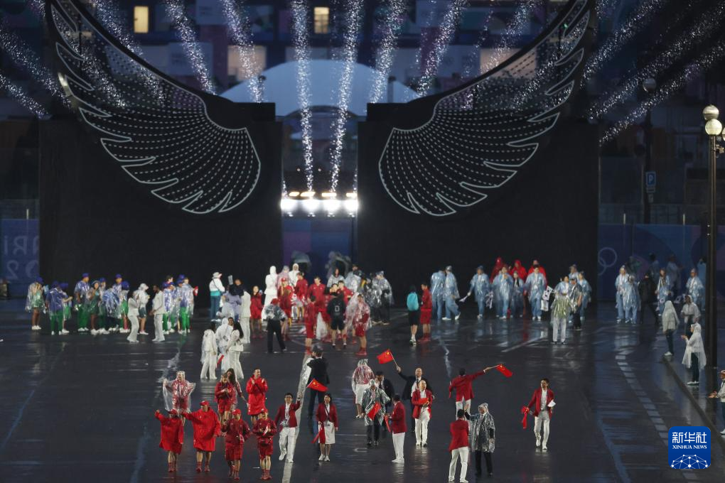 7月26日,各體育代表團(tuán)在開幕式上。新華社發(fā)(POOL照片/里卡多·毛佐蘭)