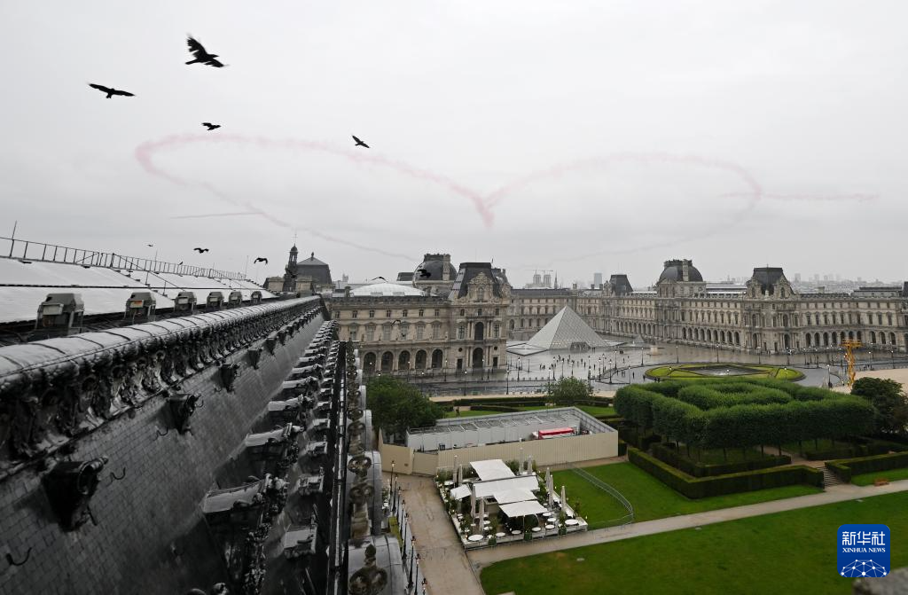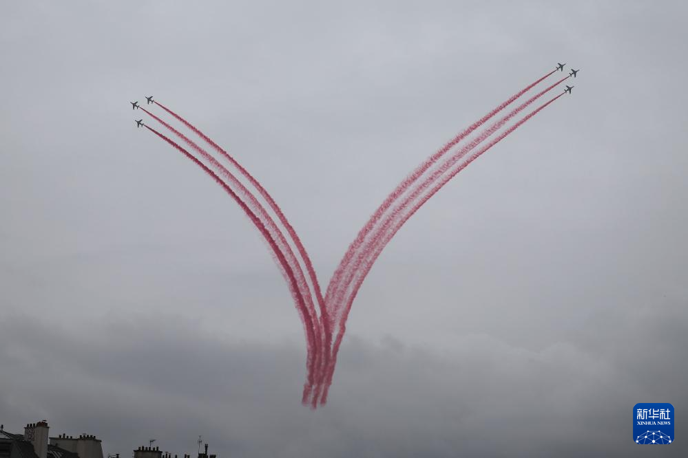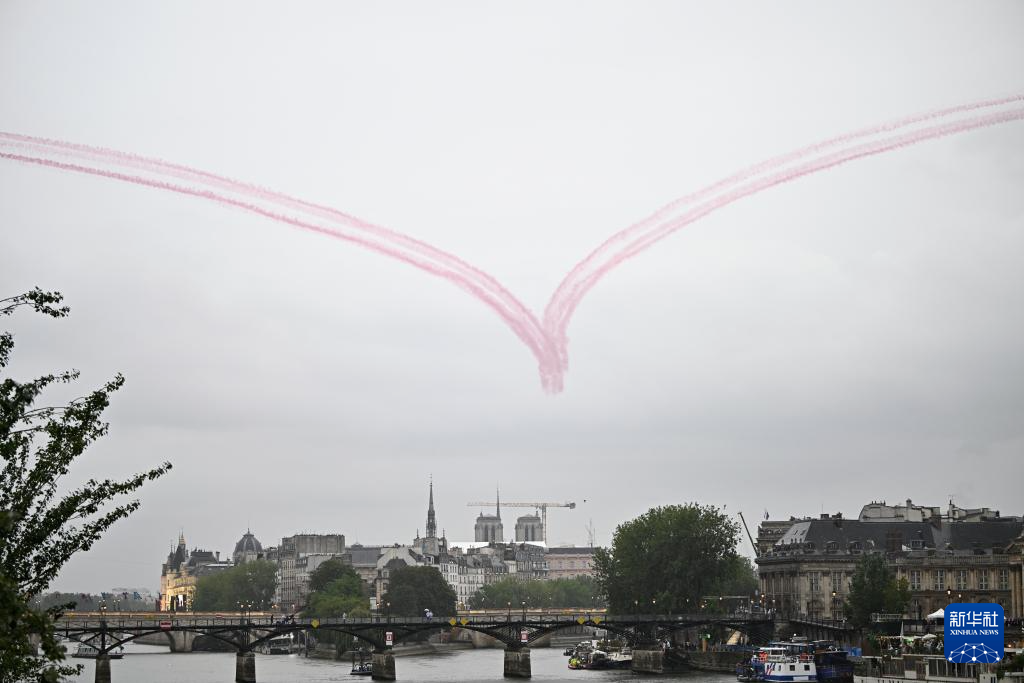 7月26日,飛機(jī)在開幕式上表演。新華社發(fā)(POOL照片/克洛達(dá)赫·基爾科因)pagebreak