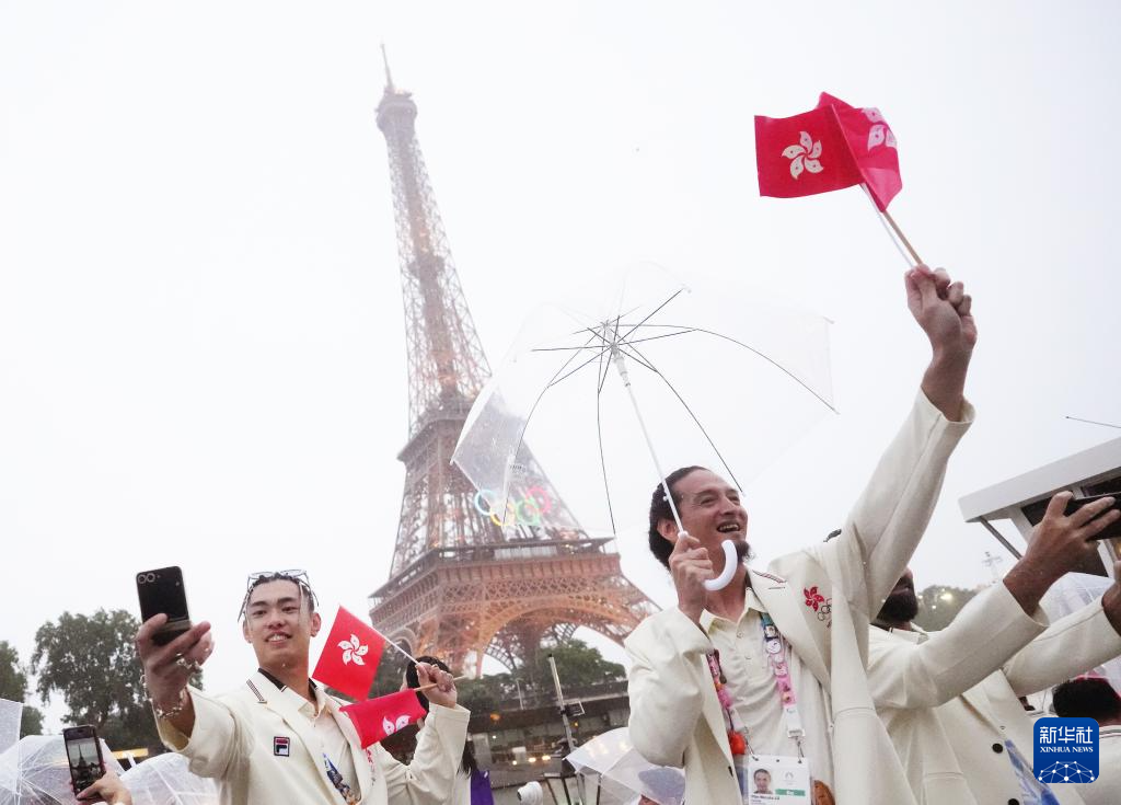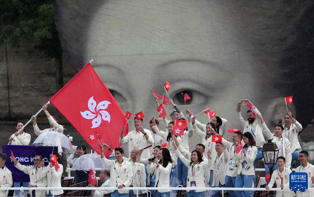 7月26日,中國(guó)香港體育代表團(tuán)在開幕式上。新華社記者 呂小煒 攝