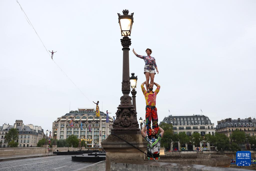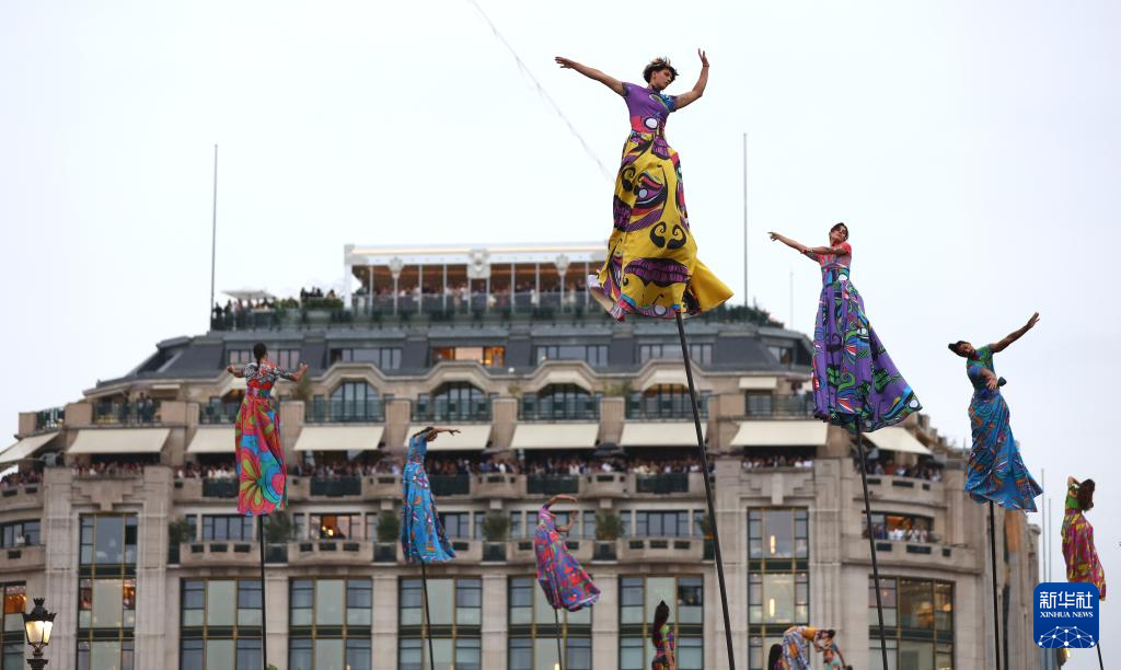7月26日,演員在開幕式現(xiàn)場(chǎng)表演。新華社發(fā)(POOL照片/克洛達(dá)赫·基爾科因)