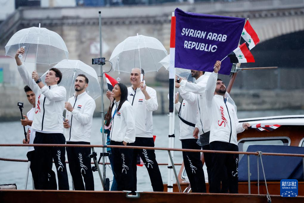 7月26日,敘利亞體育代表團(tuán)在開幕式上。新華社記者 江文耀 攝pagebreak