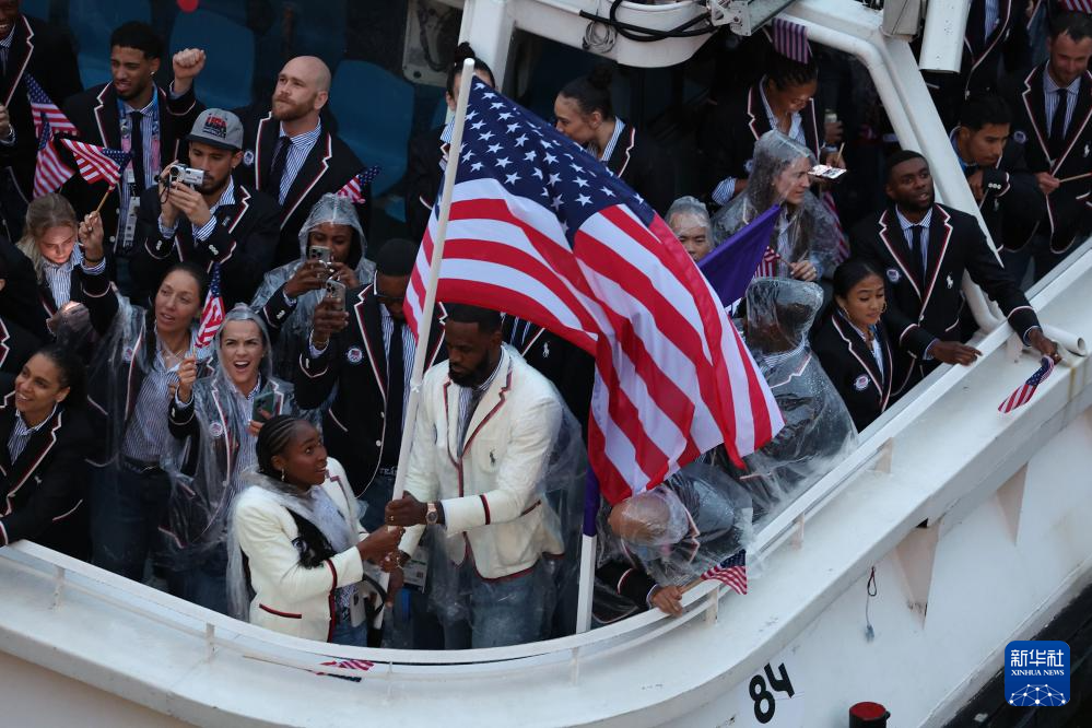7月26日,美國(guó)體育代表團(tuán)在開幕式上。新華社記者 萬(wàn)象 攝