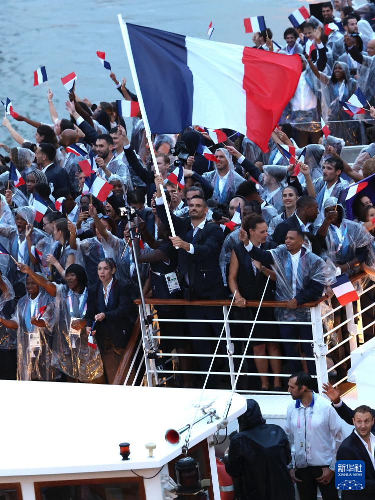 7月26日,法國(guó)體育代表團(tuán)在開幕式上。新華社記者 郭昱 攝