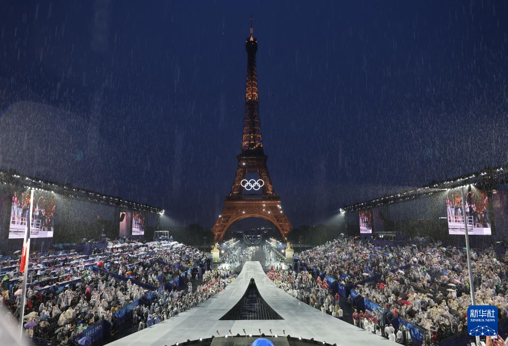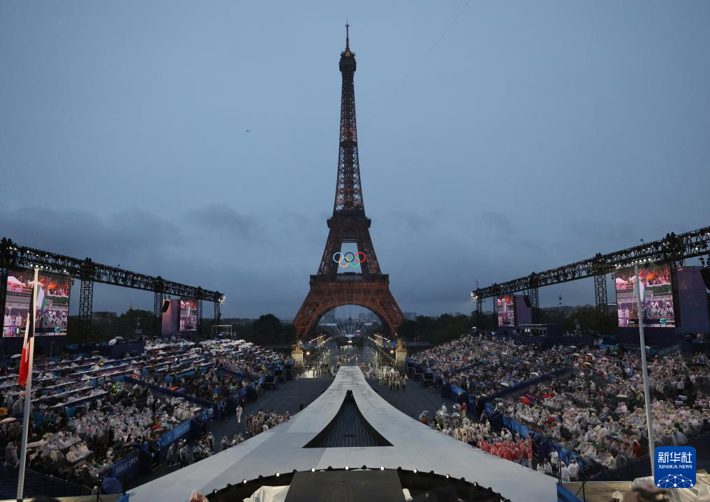 這是7月26日在特羅卡德羅廣場(chǎng)拍攝的開幕式現(xiàn)場(chǎng)。新華社發(fā)(POOL照片/帕斯卡爾·勒·塞格雷坦)