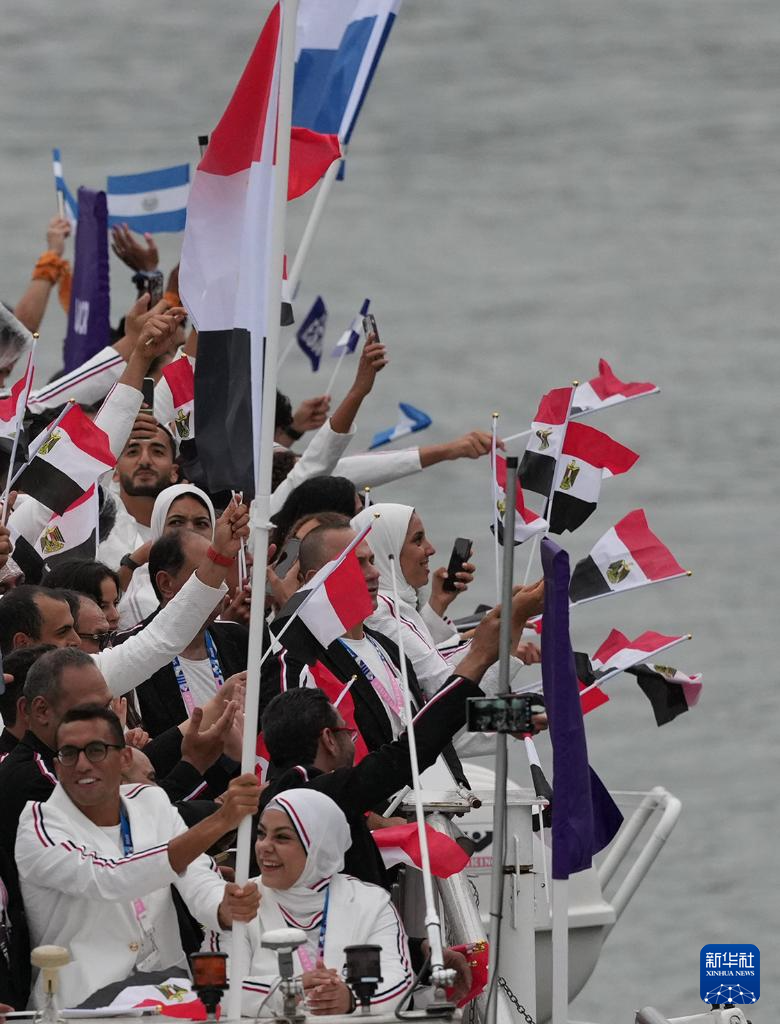 7月26日,埃及體育代表團(tuán)(右)在開幕式上。新華社記者 萬(wàn)象 攝