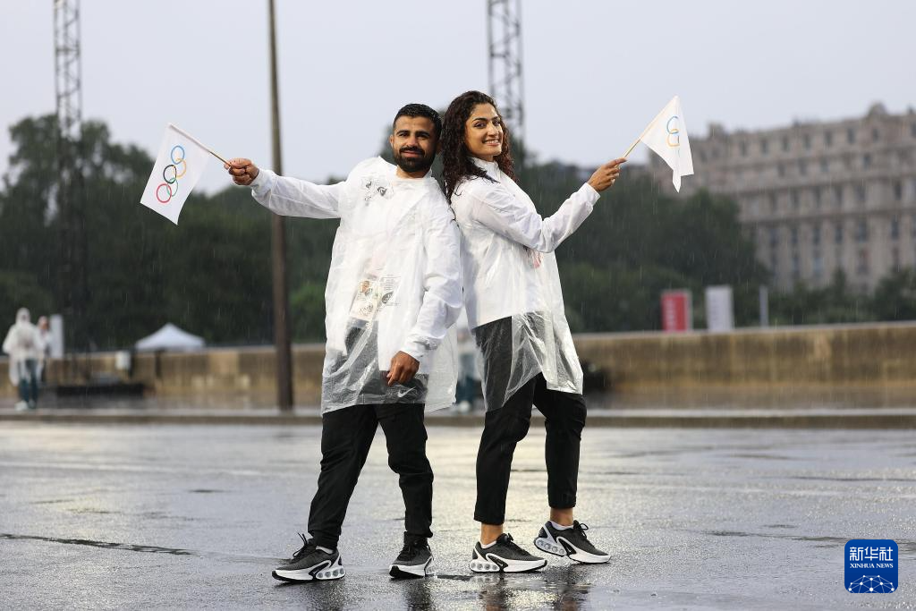 7月26日,難民體育代表團(tuán)成員在開幕式上。新華社記者 王東震 攝pagebreak