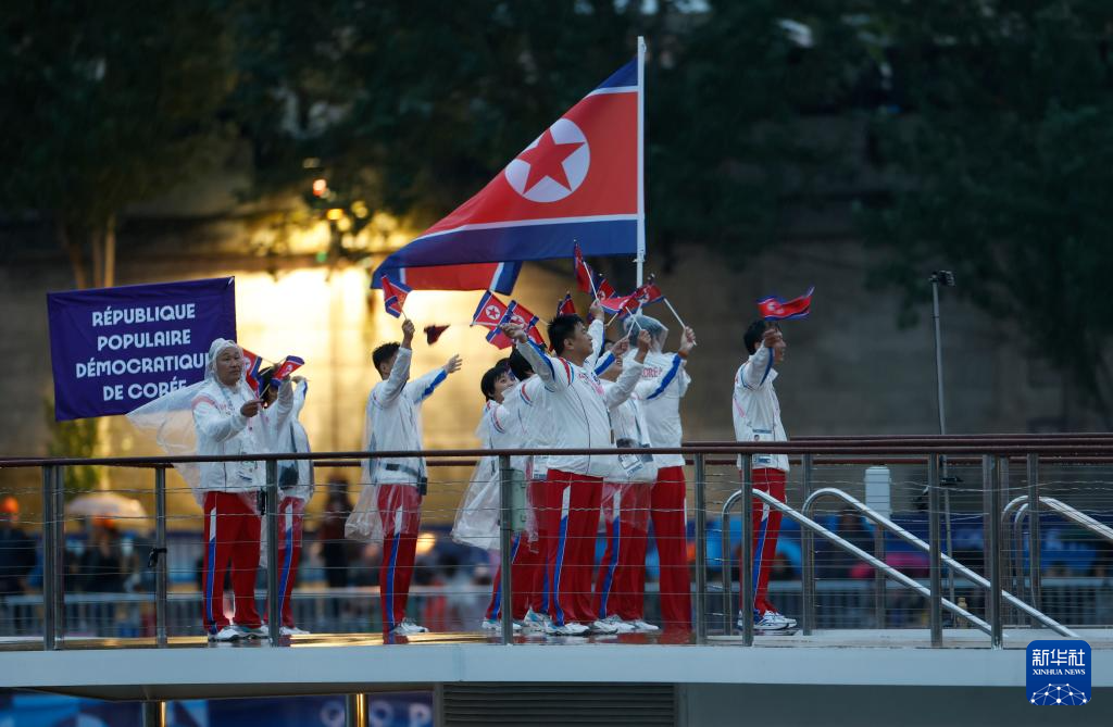 7月26日,朝鮮體育代表團(tuán)在開幕式上。新華社記者 費(fèi)茂華 攝