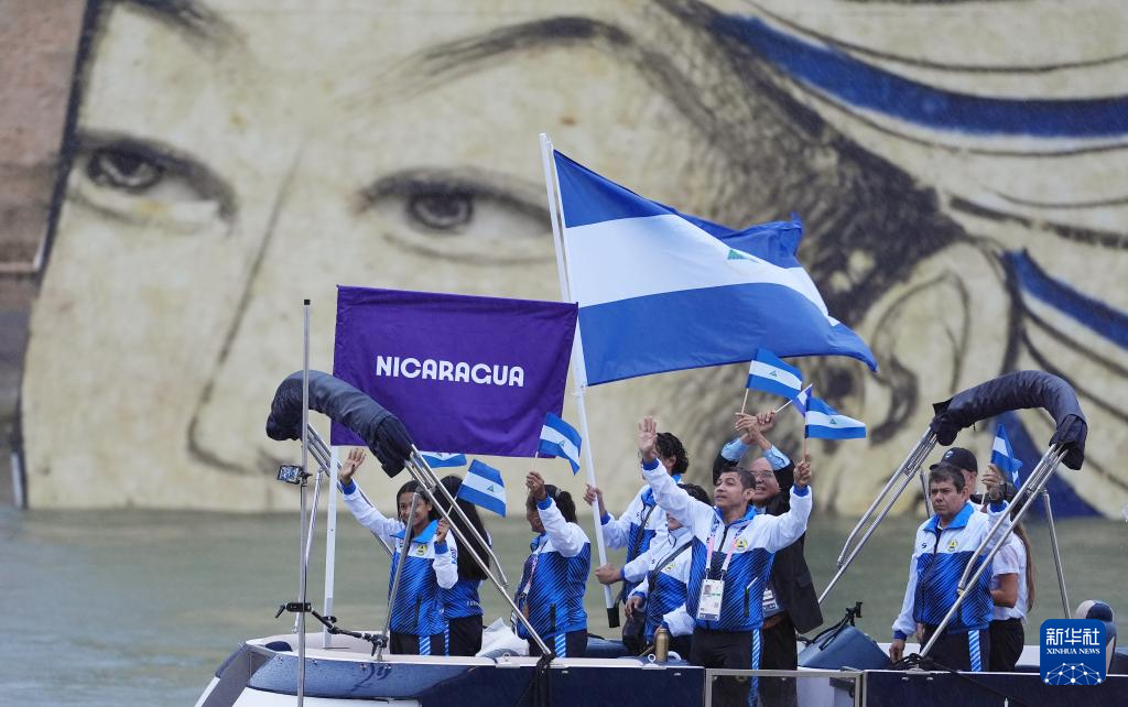 7月26日,尼加拉瓜體育代表團(tuán)在開幕式上。新華社記者 江文耀 攝
