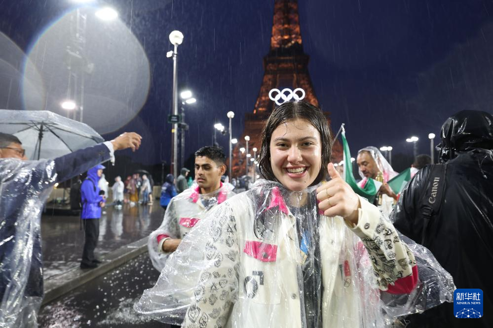 7月26日,觀眾在雨中觀看開幕式。新華社發(fā)(POOL照片/克洛達(dá)赫·基爾科因)