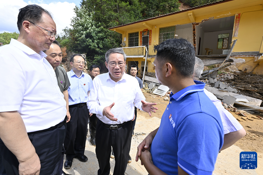 8月1日,中共中央政治局常委、國務(wù)院總理李強(qiáng)在湖南郴州看望慰問受災(zāi)群眾,檢查指導(dǎo)防汛工作。這是李強(qiáng)在資興市州門司鎮(zhèn)燕窩村實(shí)地察看災(zāi)情,走訪受災(zāi)村民。新華社記者 岳月偉 攝
