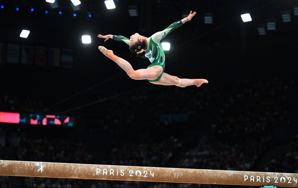 8月5日,中國(guó)選手周雅琴在平衡木比賽中。新華社記者 程敏 攝