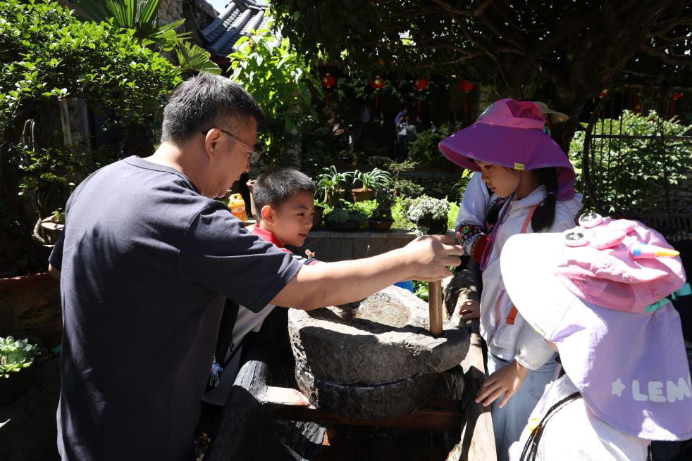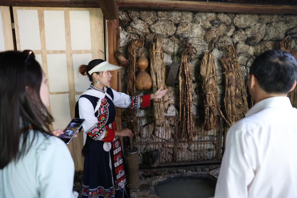 7月31日,游客在麗江市玉龍納西族自治縣玉湖村的一處納西族村民家中體驗(yàn)當(dāng)?shù)靥厣幕?。新華社記者 呂帥 攝
