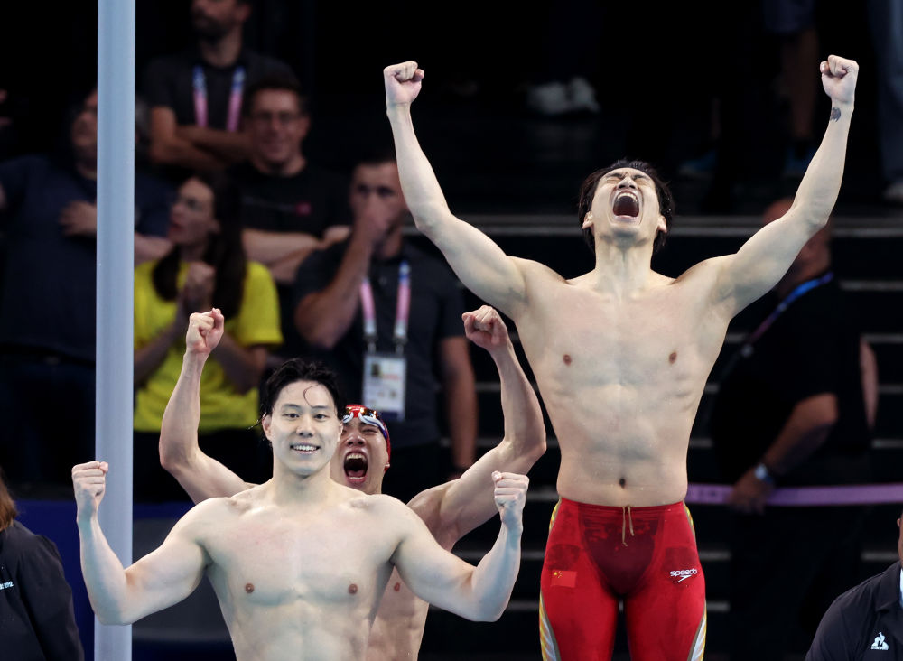 巴黎奧運會游泳賽場最后一個比賽日,男子4X100米混合泳接力決賽,當潘展樂完成反超,幫助中國隊力壓壟斷該項目40年的美國隊和占盡主場優(yōu)勢的法國隊,以3分27秒46的成績奪冠時,現(xiàn)場的歡呼聲達到了頂峰。