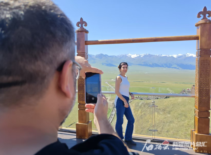 低山舒緩,碧草如茵,歡快的《黑走馬》舞蹈、香氣四溢的抓飯、高大的駿馬……8月9日,“最是新疆看不夠”網(wǎng)絡(luò)傳播活動一行人,走進(jìn)那拉提旅游風(fēng)景區(qū),哈里吉國際時(shí)事傳媒的塞爾坎·科奇導(dǎo)演,用他的鏡頭記錄下那拉提的美景?!斑@里的風(fēng)土人情,是如此的豐富多彩,那拉提草原的自然美景和人文景觀,總是讓人拍不夠。”